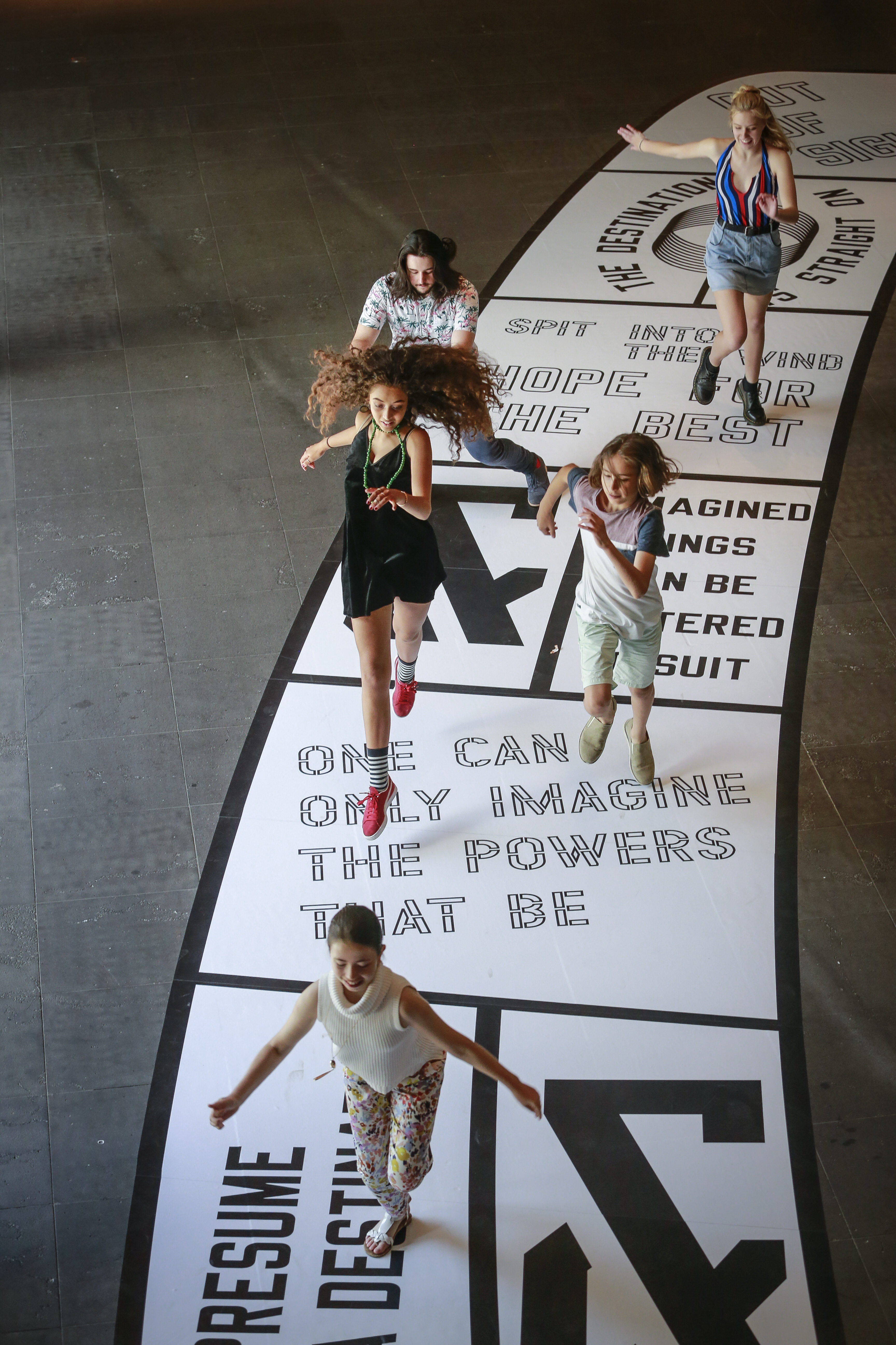 „Die BesucherInnen bringen jeweils ihren persönlichen Hintergrund mit. Sobald sie vor der „Marelle“ (so heißt dieses Hüpfspiel auf Französisch) stehen und darüber nachdenken, wie es ist, VON HIER NACH DORT zu gelangen, erkennen sie, dass sie dies zuerst in ihrer Vorstellung tun müssen und damit eine Position beziehen.“