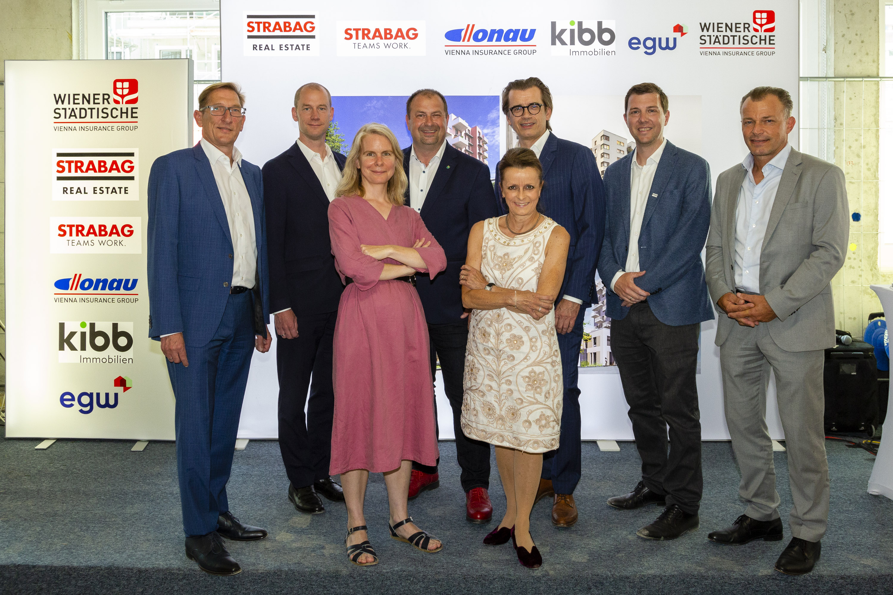 Im trendigen Nordbahnviertel im zweiten Wiener Gemeindebezirk errichten vier Bauherren auf zwei Baufeldern Lebensraum für rund 1.200 Menschen. Bis zum Frühjahr 2023 entstehen in zwölf Gebäuden insgesamt rund 460 Wohnungen für Singles, Paare und Familien – über ein Viertel davon steht als Eigentum zur Verfügung. Am 28. Juni 2022 fand die Gleichenfeier der Wohnbauten statt. In Anwesenheit von Alexander Nikolai, Bezirksvorsteher Leopoldstadt, Christine Dornaus, Vorstandsdirektorin Wiener Städtische Versicherung, Wolfgang Petschko, Vorstandsdirektor DONAU Versicherung, Erwin Größ, Geschäftsführer der STRABAG Real Estate, und Thomas Auböck, Geschäftsführer der KIBB Immobilien, wurde der Baufortschritt festlich gefeiert.