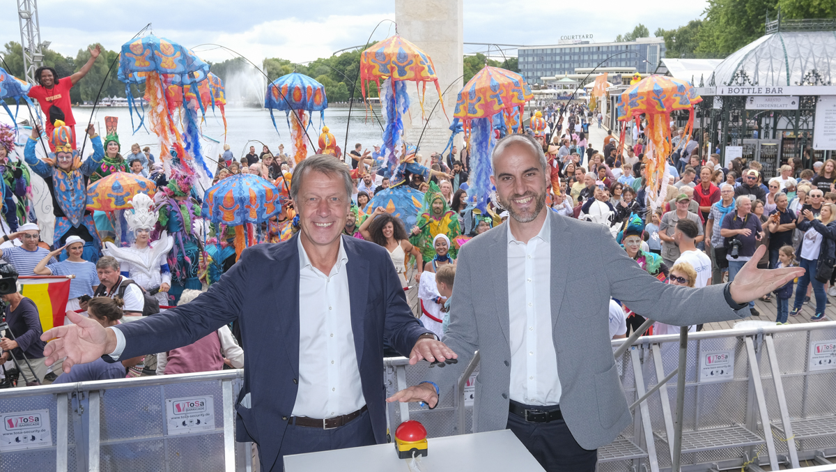 "Das 35. Maschseefest ist eröffnet" - um 18 Uhr haben Gastgeber Hans Christian Nolte, Geschäftsführer der Hannover Veranstaltungs GmbH (HVG) und Belit Onay, Oberbürgermeister der Stadt Hannover, mit vielen weiteren Gästen das diesjährige Maschseefest für die Besucher geöffnet.