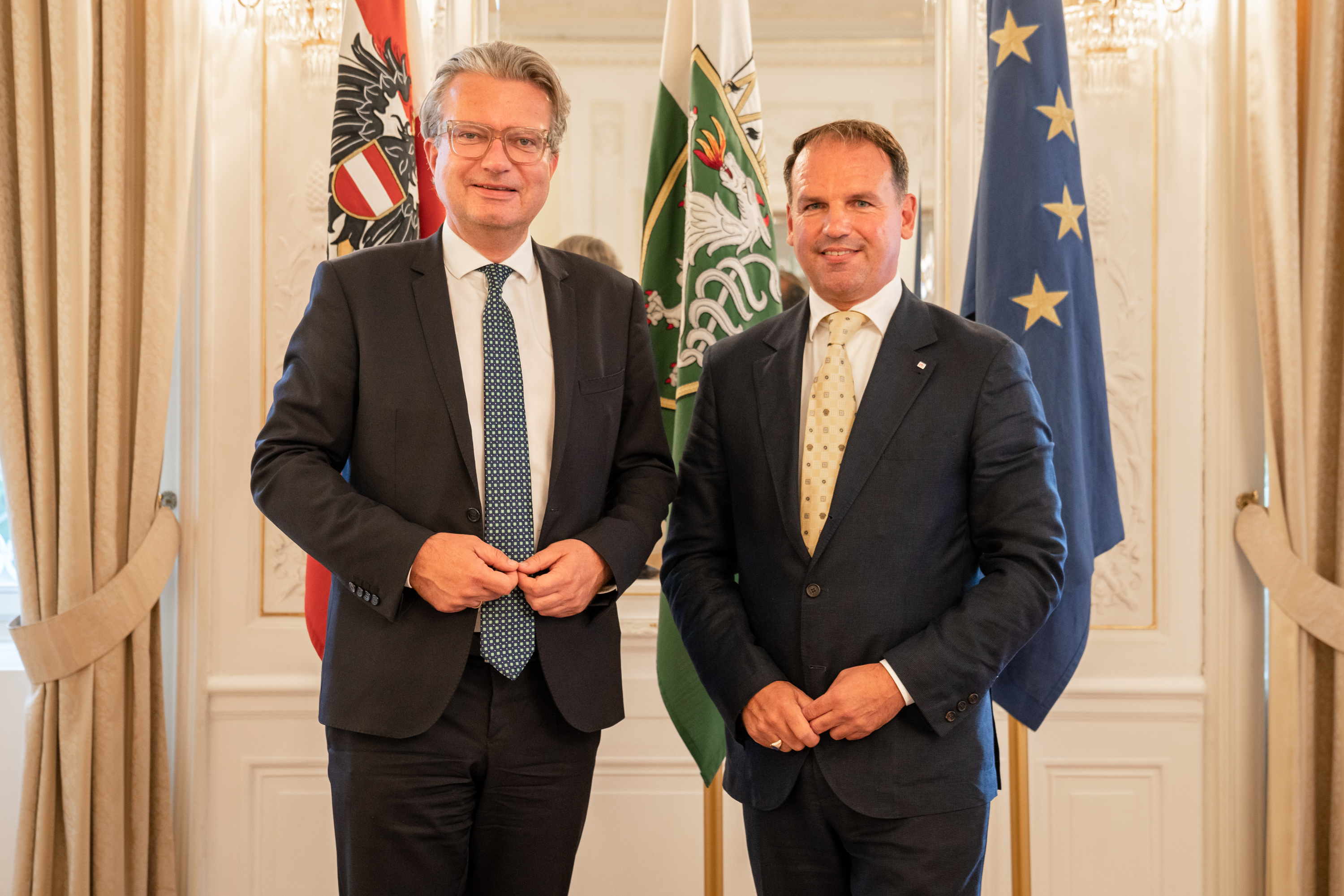 Die feierliche Angelobung von Gustav Spener als Präsident der Kammer der Ziviltechniker:innen durch den steirischen Landeshauptmann Christopher Drexler fand am 12.8.2022 in der Grazer Burg statt.