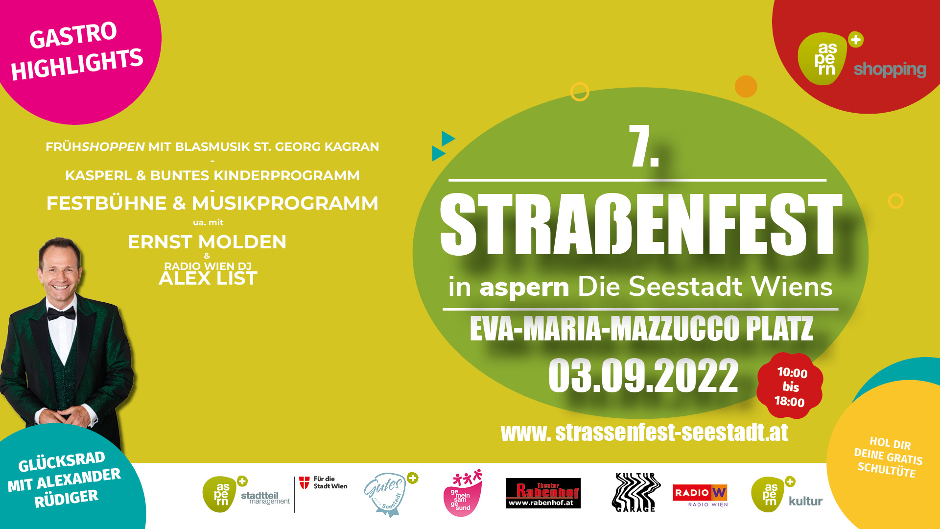 Veranstaltet wird das Seestädter Straßenfest von der aspern Seestadt Einkaufsstraßen GmbH, verantwortlich für die Marke aspern shopping, in Kooperation mit der Wien 3420 aspern Development AG und dem Unternehmernetzwerk „Gutes aus der Seestadt“ und unterstützt von zahlreichen Seestädter Initiativen sowie der IBA_WIEN 2022.