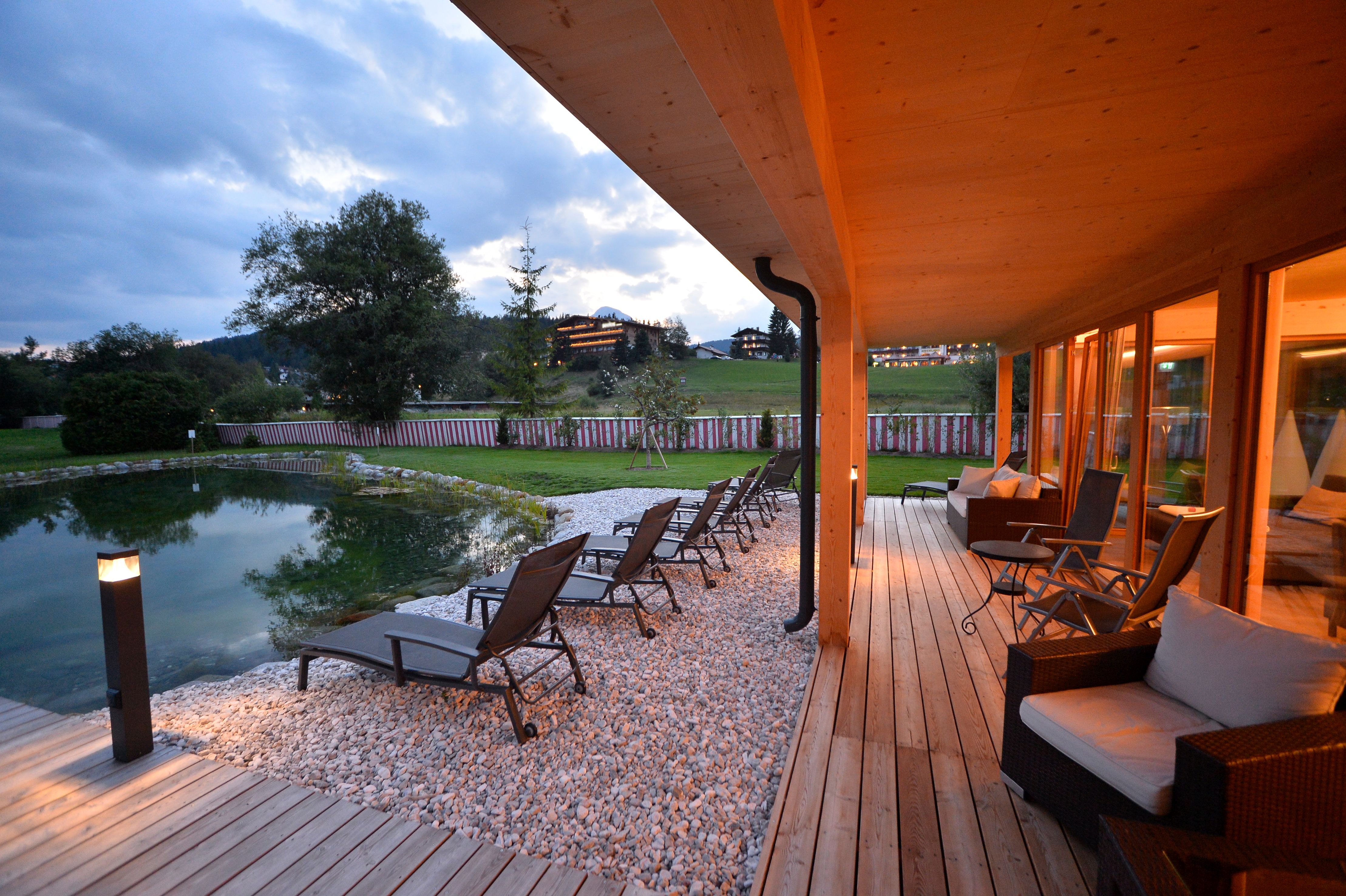 „Bei uns im Hotel können sich unsere Gäste nach der anstrengenden Tour dann verwöhnen lassen“, meint Carpentari. „Der Wohlfühl- und Wellnessbereich umgeben von der Tiroler Bergwelt ist schon für sich etwas ganz Besonderes. Das beheizte Schwimmbad, die Sonnenterrasse, der großzügige hoteleigene Park und das Biotop mitten im Garten Eden tragen viel zur Erholung bei.“ Besonders gerne nutzen die Gäste aber nach einem abenteuerlichen Tag Edens Saunawelt: finnische Sauna, Biosauna, Dampfbad und Infrarot-Kabine lassen den Tag entspannt ausklingen. Durch die hohen Glasfenster der finnischen Sauna eröffnet sich der Blick auf die Bergwelt mit ihren schönen Wetterstimmungen. Wie ein kleiner Bergsee liegt das Biotop davor.