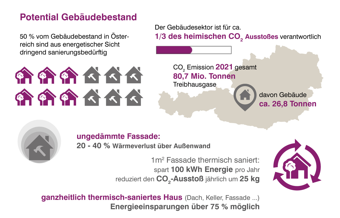 Ein Beispiel: Familie K. hat kürzlich ein Haus geerbt. Aufgrund der aktuellen geopolitischen Entwicklungen und hohen Energiepreise wollte sie das Haus mit einer neuen Heizungsanlage versehen. Ein Vorhaben ganz im Sinne der Sanierungsoffensive. Ernüchterung kam mit dem Installateur. Er stellte die Frage nach dem thermischen Gebäudestatus: Der lautet ungedämmt. Das ist der Grund zur Absage des Heizkesseltausches. Wie Familie K. ergeht es momentan vielen Immobilien-BesitzerInnen. Die ARGE Qualitätsgruppe Wärmedämmsysteme (QG) will aufklären.
