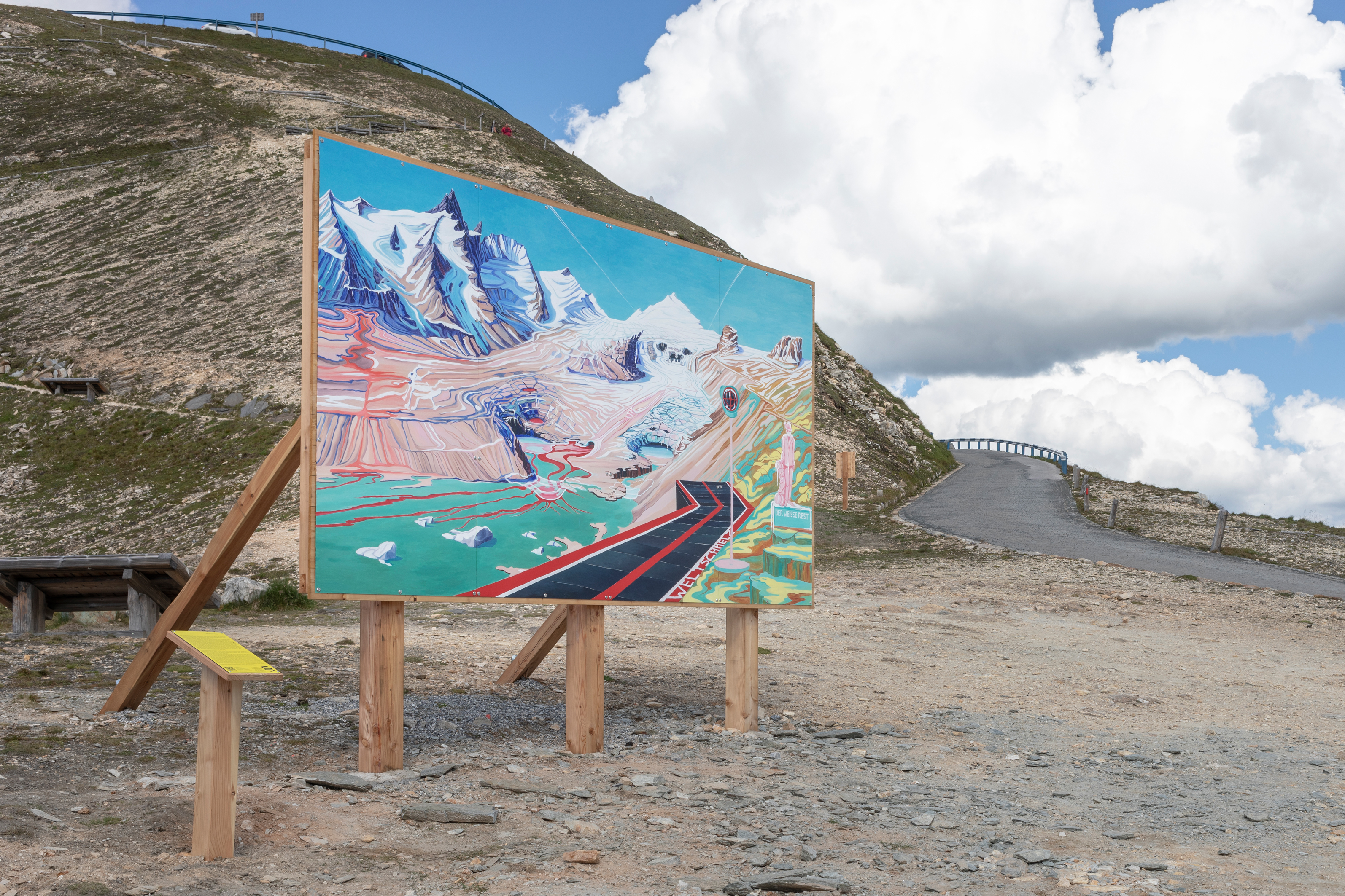 Die Interventionen kommentieren das hochalpine Fahr- und Natur-Erlebnis. Sie integrieren sich in vor Ort existierende Darstellungstechniken und Rituale und schärfen den Blick für Themen, die in der Geschichte des Straßenprojekts bereits angelegt sind: die Obsession zur Beherrschung der Natur, die Straße als Wallfahrtsweg, Handelsroute, Sportgerät und Teststrecke, die Fahrzeuge als essentielle Weggefährt*innen, die Menschen in großer Anzahl hoch hinauf und tief hinunter durch die Landschaft tragen, durch Lebensräume von Wild- und Nutztieren, entlang steigender Schneegrenzen und schmelzender Gletscher – die Erhabenheit und Verletzlichkeit immer vor Augen, Glücksgefühle und Todesängste, Träume und Albträume, wie in einem eigenen Container-Kino am Berg erlebt werden kann.