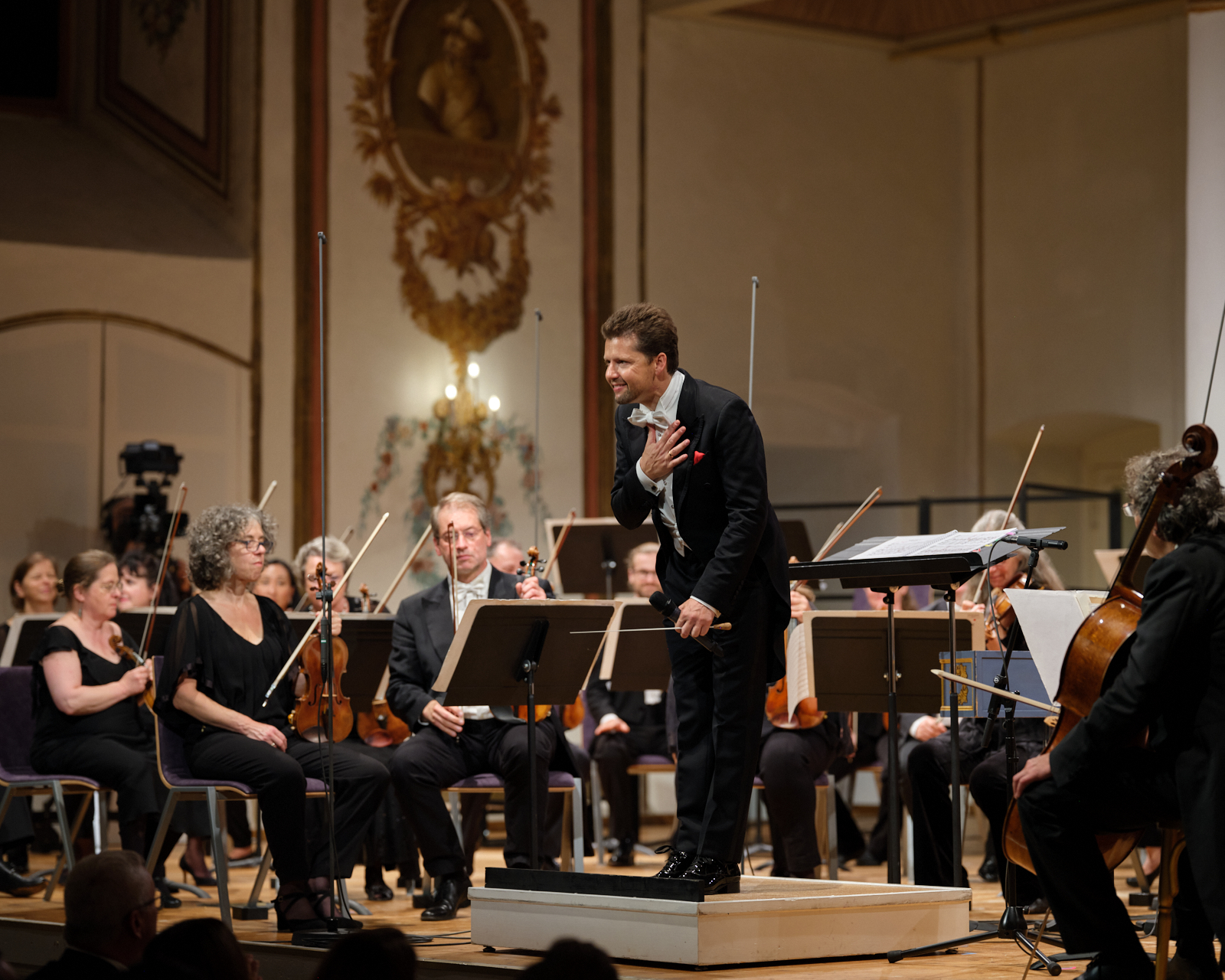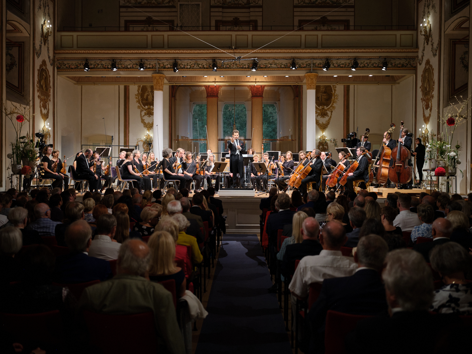 Stefan Ottrubay, Direktionsrat der Esterhazy Stiftungen, und Julian Rachlin luden vor Konzertbeginn zum Empfang. Zahlreiche Vertreter aus Politik, Wirtschaft und der Musikwelt wie Außenminister Alexander Schallenberg, Bundesministerin Karoline Edtstadler, Hannes Frech, Galerist Ernst Hilger mit Partnerin, Vorstände der Esterhazy Stiftungen Matthias Grün und Michael Gröschl, Bürgermeister Thomas Steiner und Daniel Serafin, Künstlerischer Direktor der Oper im Steinbruch folgten der Einladung in die prunkvollen Räumlichkeiten von Schloss Esterházy.