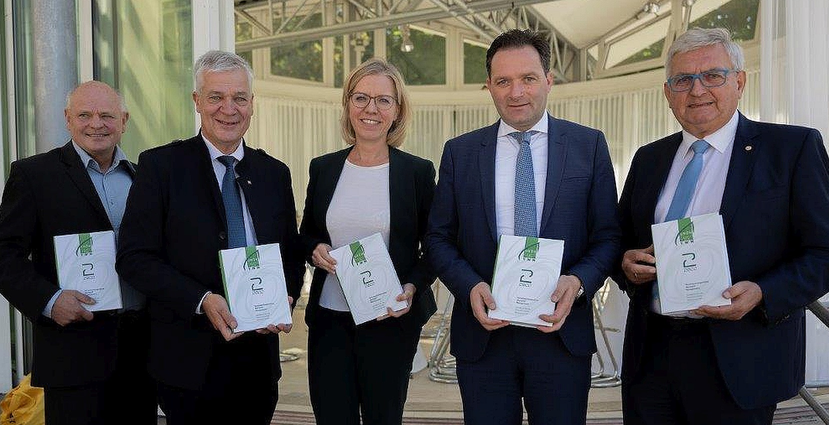 Anlässlich der Gemeindebund Sommergespräche in Altaussee übergibt LAbg. Bgm. Anton KASSER, Präsident der ARGE österreichischer Abfallwirtschaftsverbände (aergeAWV.at) gemeinsam mit dem Gemeindebund-Präsidenten Bgm. Alfred RIEDL das neu erschiene Grünbuch II der Initiative Verantwortungsvolles Wertstoffmanagement an die Minister*innen GEWESSLER und TOTSCHNIG.