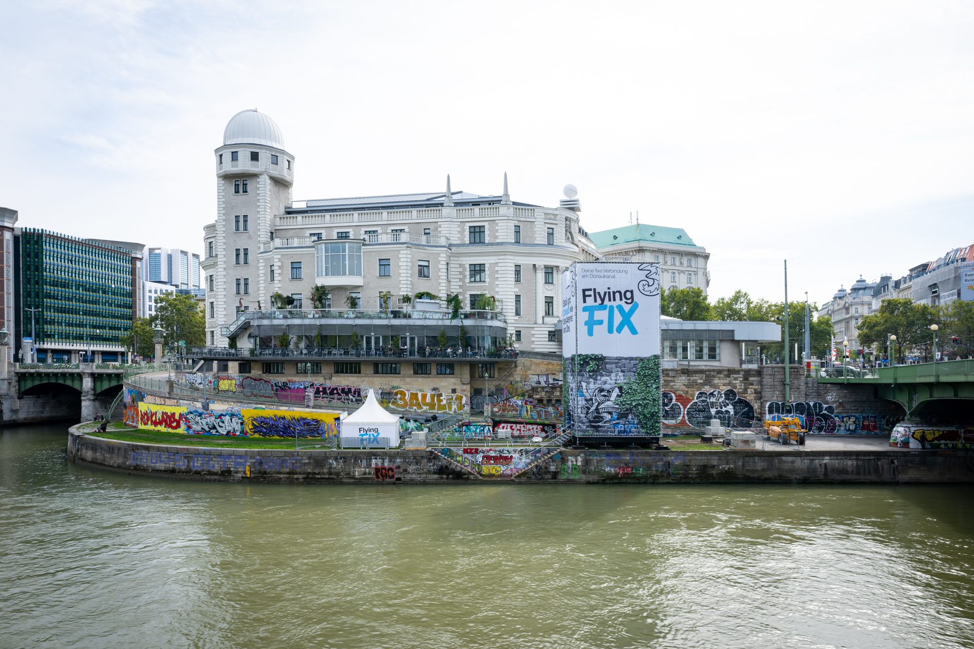 Der Drei FlyingFIX Turm direkt bei der Urania Sternwarte bei der Aspernbrücke am Wiener Donaukanal (Uraniastraße 1, 1010 Wien) ist gut erreichbar mit den U-Bahn-Linien U1 und U4 (Station Schwedenplatz) oder den Straßenbahnlinien 1 und 2 (Station Julius-Raab-Platz).