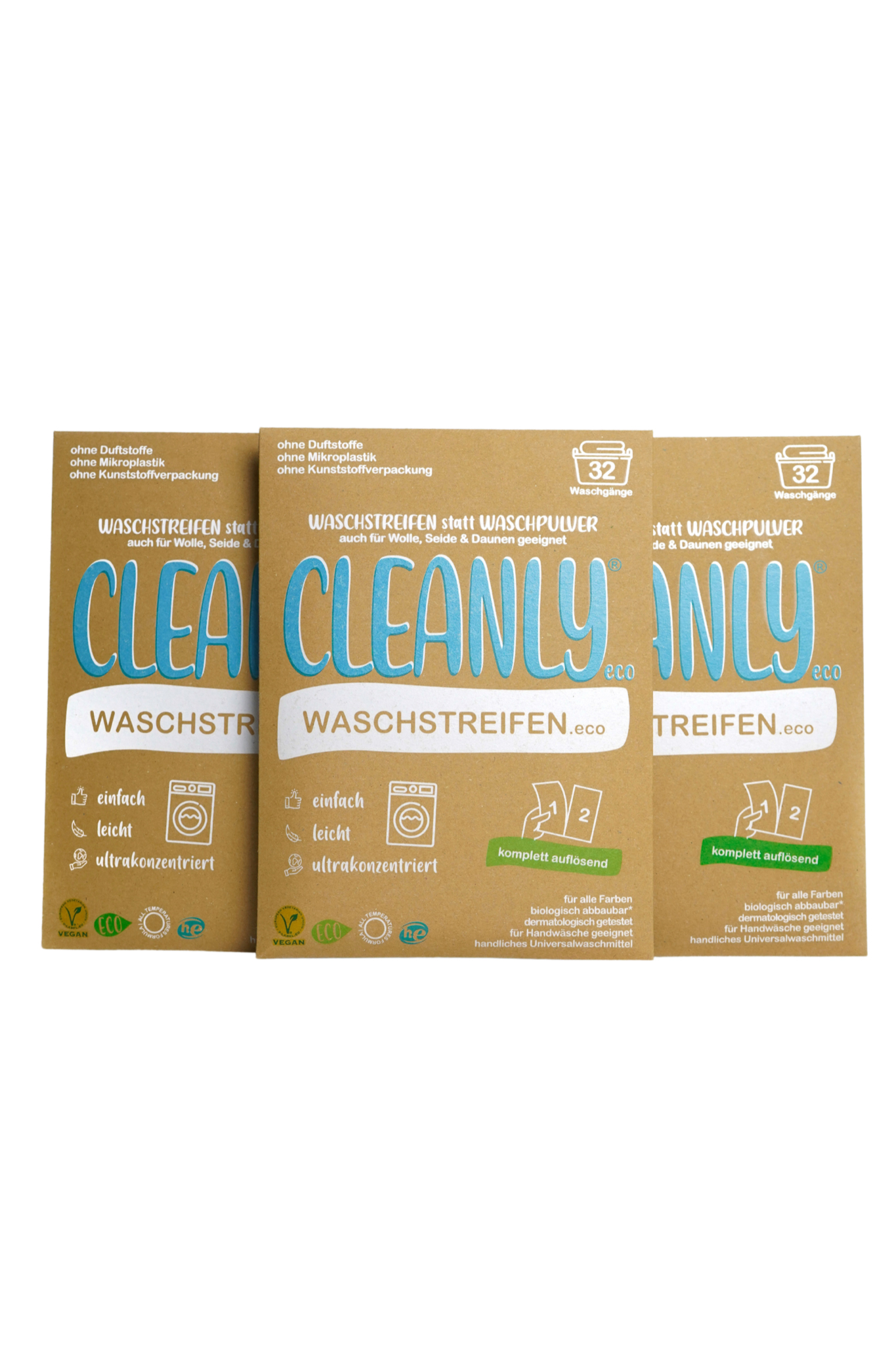 Die umweltfreundlichen Waschstreifen enthalten weder optische Aufheller noch Phosphate, Konservierungsstoffe oder Parabene und entfalten dennoch die volle Waschkraft eines herkömmlichen Waschmittels. Aus biologisch abbaubaren Inhaltsstoffen hergestellt, lösen sich die veganen, hypoallergenen Streifen rückstandslos auf und sind für alle Farben und Wäschetypen geeignet. „Sie sind außerdem unglaublich leicht, praktisch und man spart enorme Mengen an Verpackungsmüll und Transportemissionen“, weiß Kipperer. „Das Produkt ist ein Gamechanger und wir hoffen, dass viele Menschen ab sofort nur mehr zu CleanlyEco greifen, um der Umwelt etwas Gutes zu tun.“