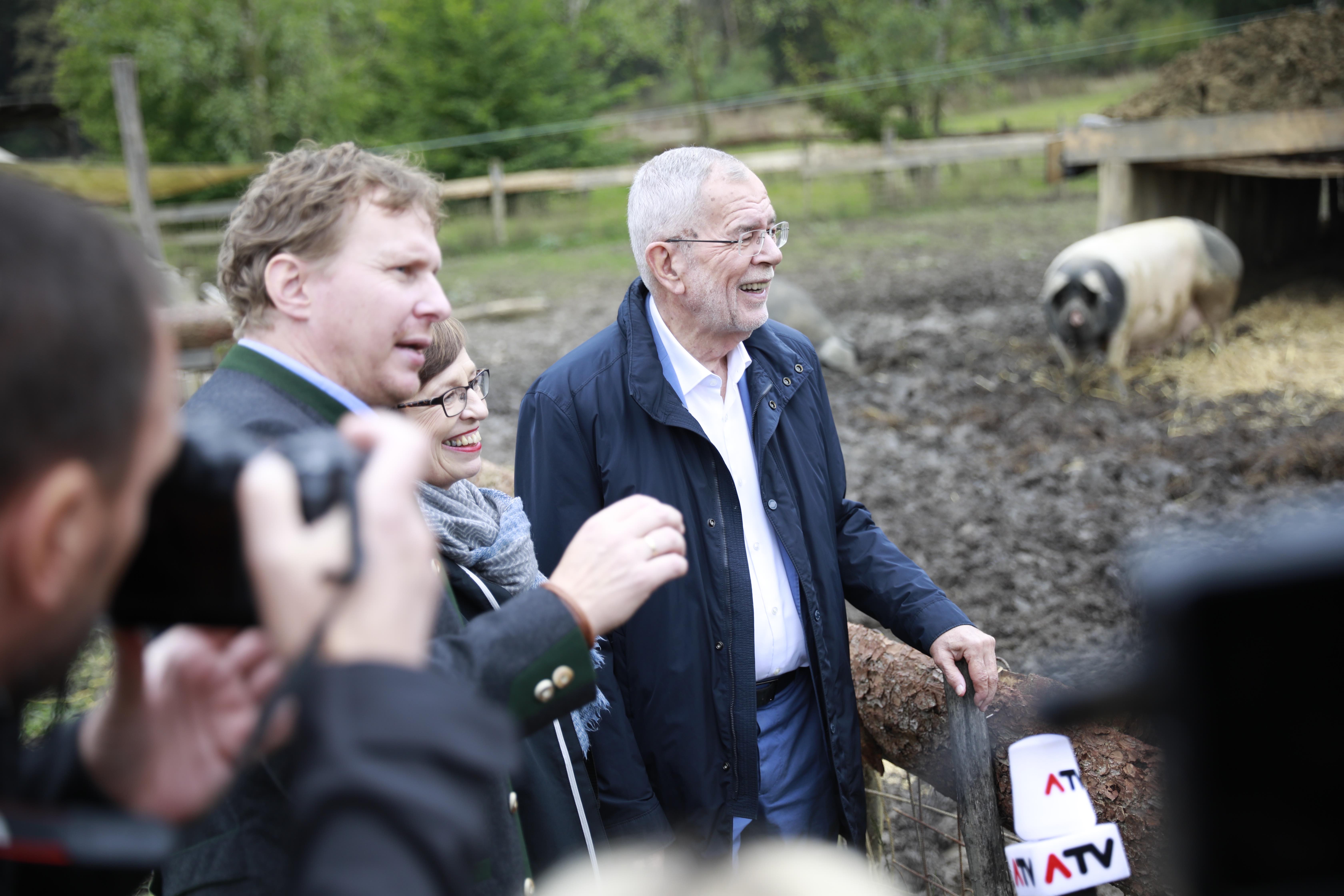 Den Präsidenten und seine Ehefrau Doris Schmidauer führte der Besuch nicht nur zum Herbstfest des oststeirischen Betriebs, sondern mit dem Traktor auch zu den betriebseigenen Weideflächen. Knapp 50 Hektar Ackerland und 30 Hektar Wiesen stehen dem Familienunternehmen zur Verfügung. Einen Teil davon – rund 300.000 Quadratmeter Weidefläche – können die Labonca-Sonnenschweine, eine Kreuzung aus Duroc-Schweine und dem Schwäbisch-Hällisch-Schwein – sowie Bergschecken-Rinder ganzjährig als Lebensraum genießen.