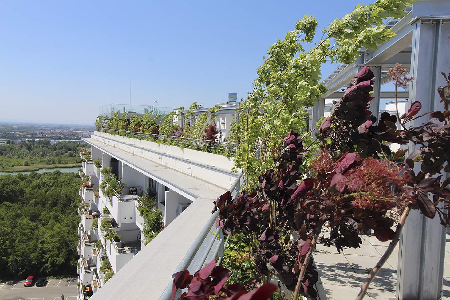 Dazu dienen nicht zuletzt die Situierung von „Urban Gardening“ auf den Dachflächen, Pools am Dach, Begegnungszonen und modellierte Dachgärten. All diese Maßnahmen dienen dazu, im Bereich des sozialen Wohnbaus mit dazu beizutragen, seitens der gemeinnützigen Bauträger einen Beitrag zur Eindämmung der Folgen des Klimawandels beizutragen.