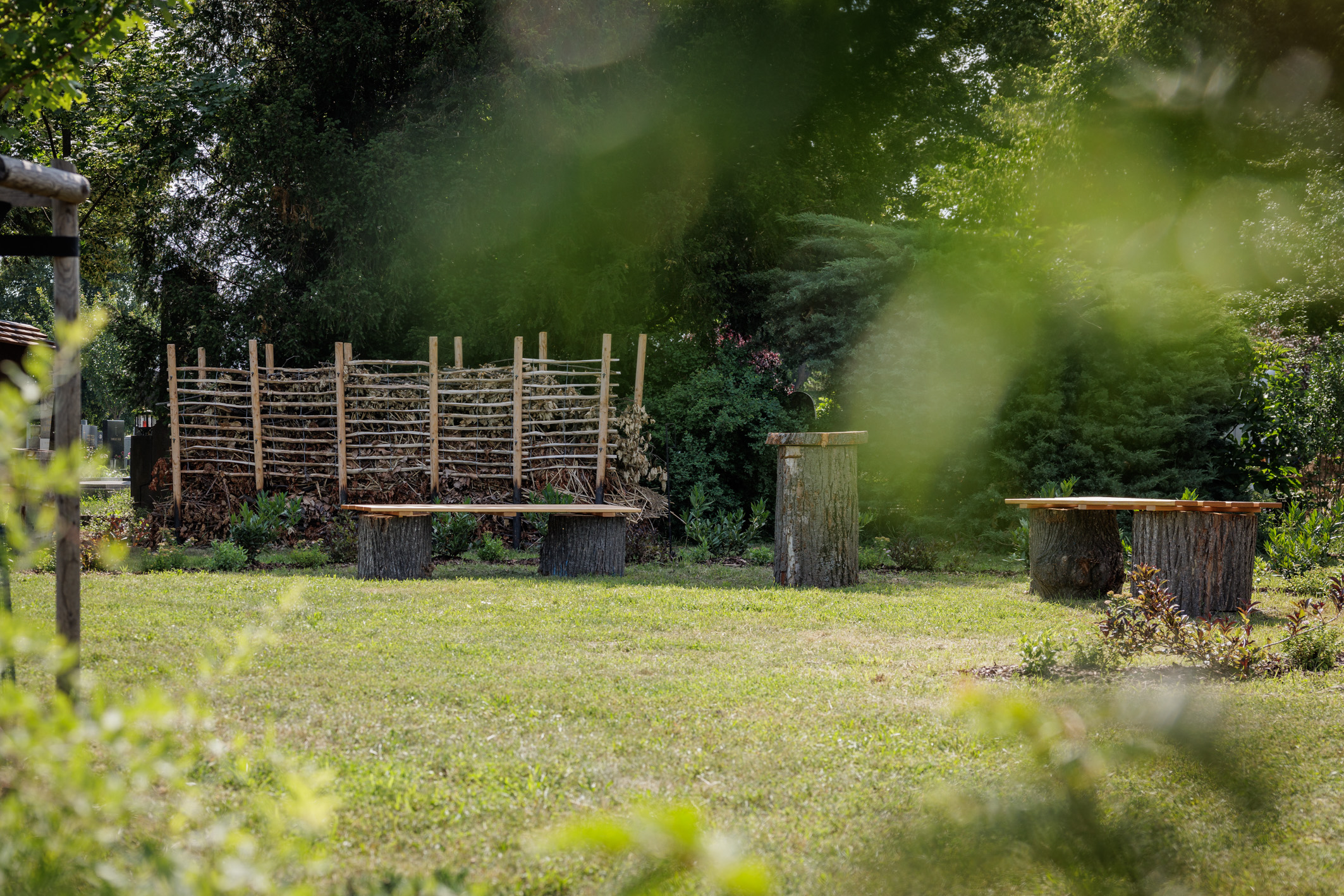 Die Nähe zur Natur wird im gesamten Areal großgeschrieben. Weitläufige Wiesenflächen, Sträucher, Bodendecker und eine Totholzecke neben dem Gedenkplatz bieten Insekten Unterschlupf und werden so zum wertvollen Lebensraum. An der Totholzecke können zu Gedenktagen Blumen angebracht werden. Eine Erinnerungsbox lädt zum Hinterlassen von Nachrichten an die Verstorbenen ein.
