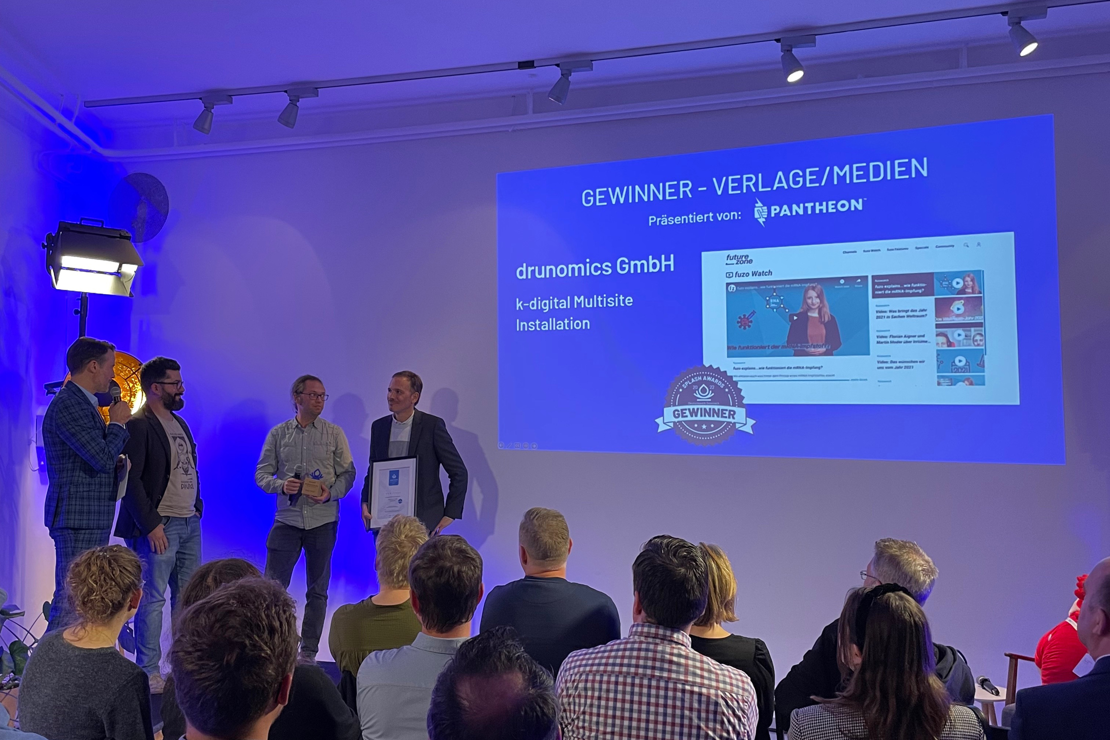 Der Splash Award in der Kategorie Verlage/Medien geht zum vierten Mal in Reihe an drunomics. In diesem Jahr konnte sich das von k-digital und drunomics umgesetzte State-of-the-Art-Konzept für die k-digital Multisite Installation, die auf Basis von Drupal 9 und Thunder für das Online-Angebot des KURIER-Netzwerks entwickelt wurde, mit futurezone.at, events.at und freizeit.at durchsetzen. Mit den Sonderpreisen für den „Greatest Business Case“ und das „Best Austrian Project“ war es gleichzeitig das erfolgreichste Projekt der heurigen Splash Awards.
