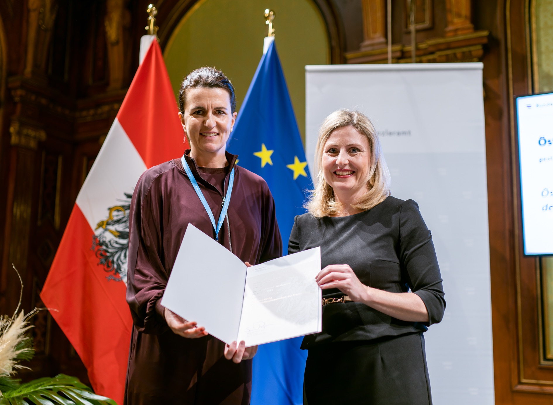 „Es ist mir eine besondere Ehre, dass ich den ersten Österreichischen Staatspreis für Frauen an die Österreichische Fußballnationalmannschaft der Frauen übergeben durfte. Diese unglaublichen Frauen haben eine außergewöhnliche Vorbildwirkung – sie haben mit ihren herausragenden Leistungen die Sichtbarkeit von Frauen im Sport und in den Medien maßgeblich gesteigert und tragen so zum Abbau veralteter Rollenbilder und damit auch zum gesamtgesellschaftlichen Wandel bei“, betont Frauenministerin Susanne Raab.