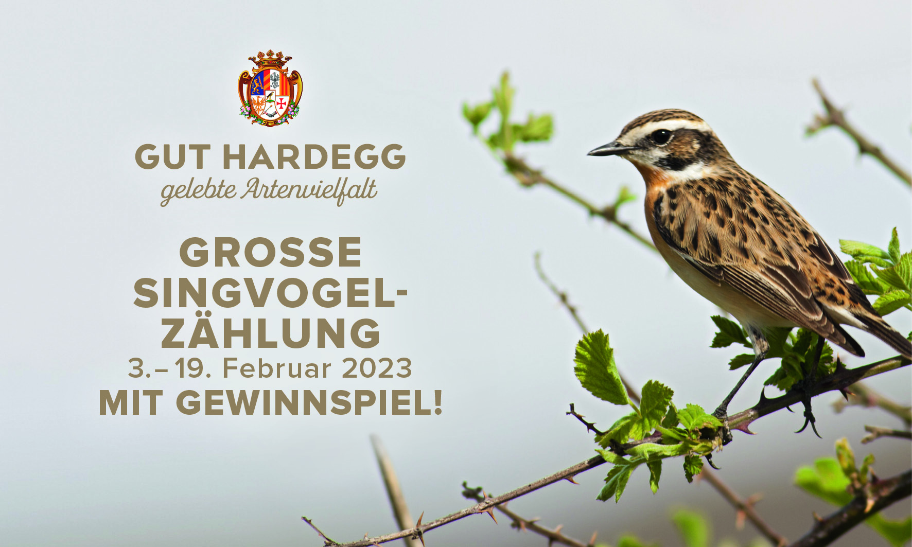 Gut Hardegg Singvogelzählung „Big Farmland Bird Count“ 2023 von 3. bis 19. Februar 2023. Informationen, Schulungsfilm und Zähllisten unter: guthardegg.at/singvogelzaehlung-2023