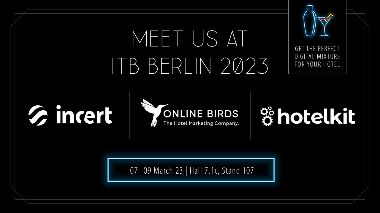 incert, hotelkit und Online Birds präsentieren gemeinsam auf der ITB Berlin 2023 Lösungen zur digitalen Transformation in der Tourismusbranche.
