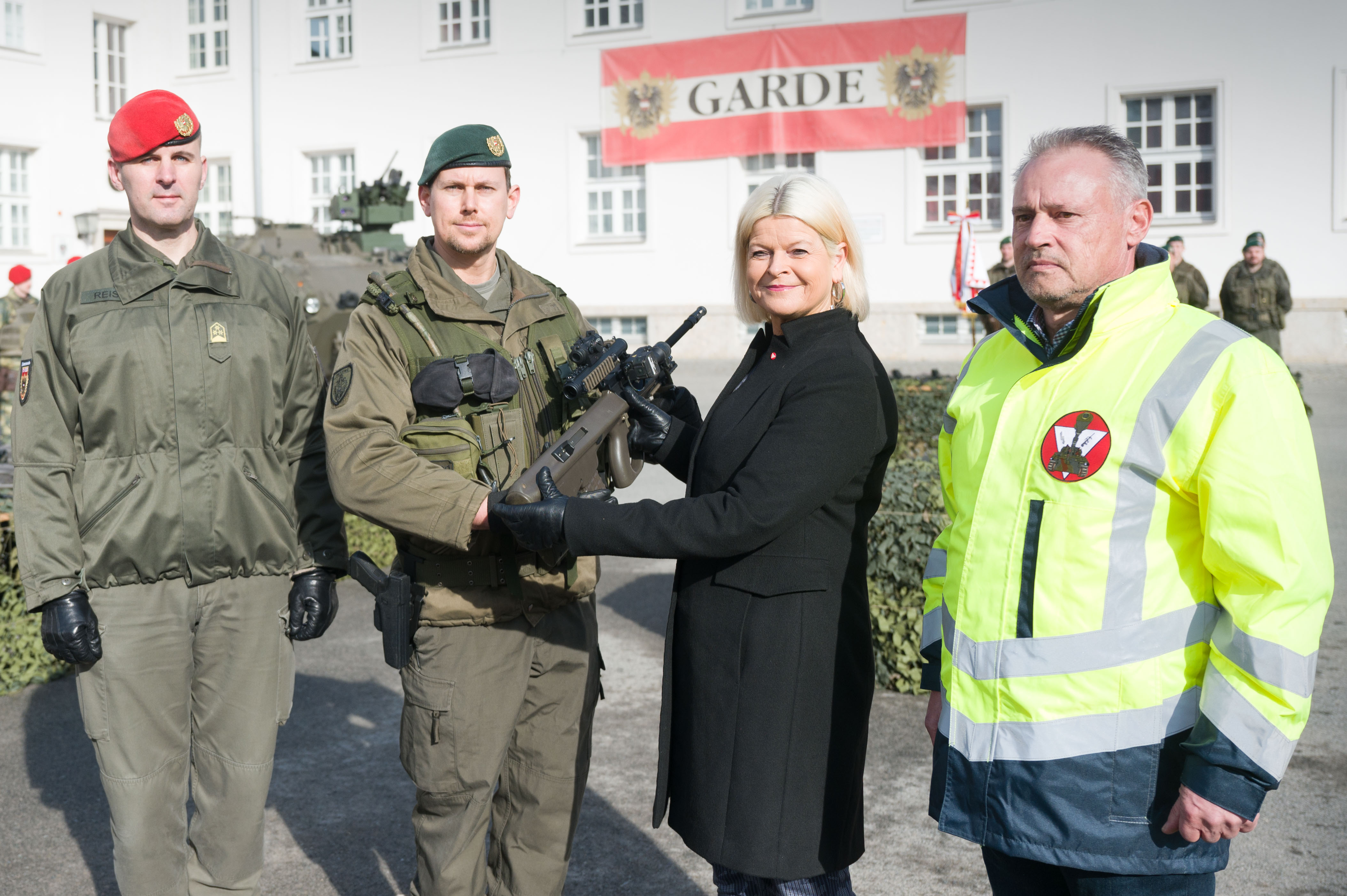 „Heute freue ich mich auf die Übergabe der ersten Tranche des modifizierten Sturmgewehrs 77 an die Truppe. In den kommenden zwei Jahren werden insgesamt 14.400 Gewehre sowohl an die Miliz als auch an die Kaderpräsenzeinheiten ausgegeben. Das 1977 eingeführte Sturmgewehr wurde zwischenzeitlich zum eindeutigen Identifizierungsmerkmal der österreichischen Soldatinnen und Soldaten, sowohl im In- als auch im Ausland“, so Verteidigungsministerin Tanner.