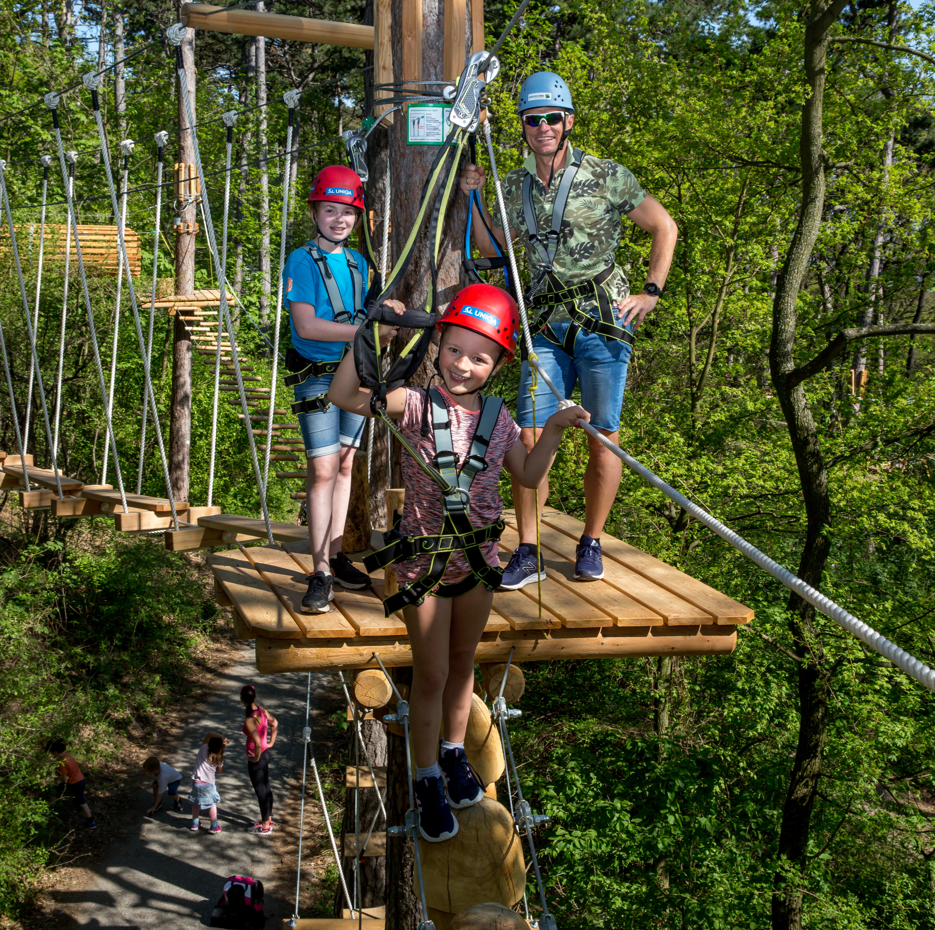 Ganz nebenbei kann die grandiose Aussicht über die Wiener Skyline genossen werden, oder man fliegt auf unseren Flying Fox‐Anlagen durch die Baumwipfel!