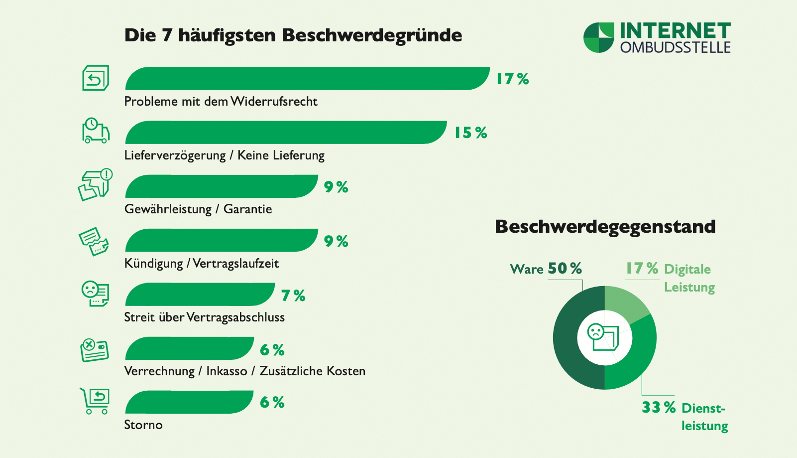 Häufigste Beschwerdegründe: Widerrufsrecht, ausbleibende Lieferungen, Gewährleistung