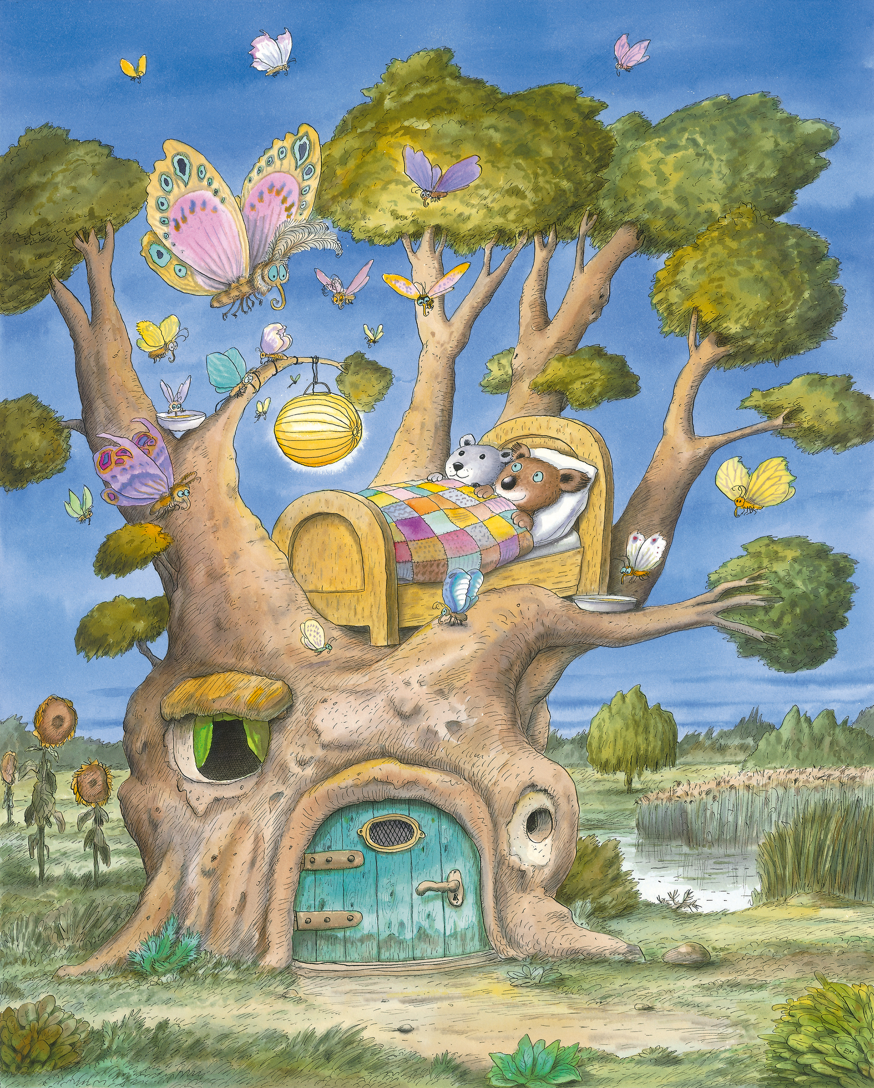 Geborgenheit, Humor, Fantasie und Liebe zeichnen Erwin Mosers Werke aus. Für die Ausstellung habe ich Originale ausgewählt, die diese Merkmale im Besonderen ausdrücken. Sehr bekannte Bilder und auch einige meiner persönlichen Lieblingsillustrationen ergänzen die Zusammenstellung