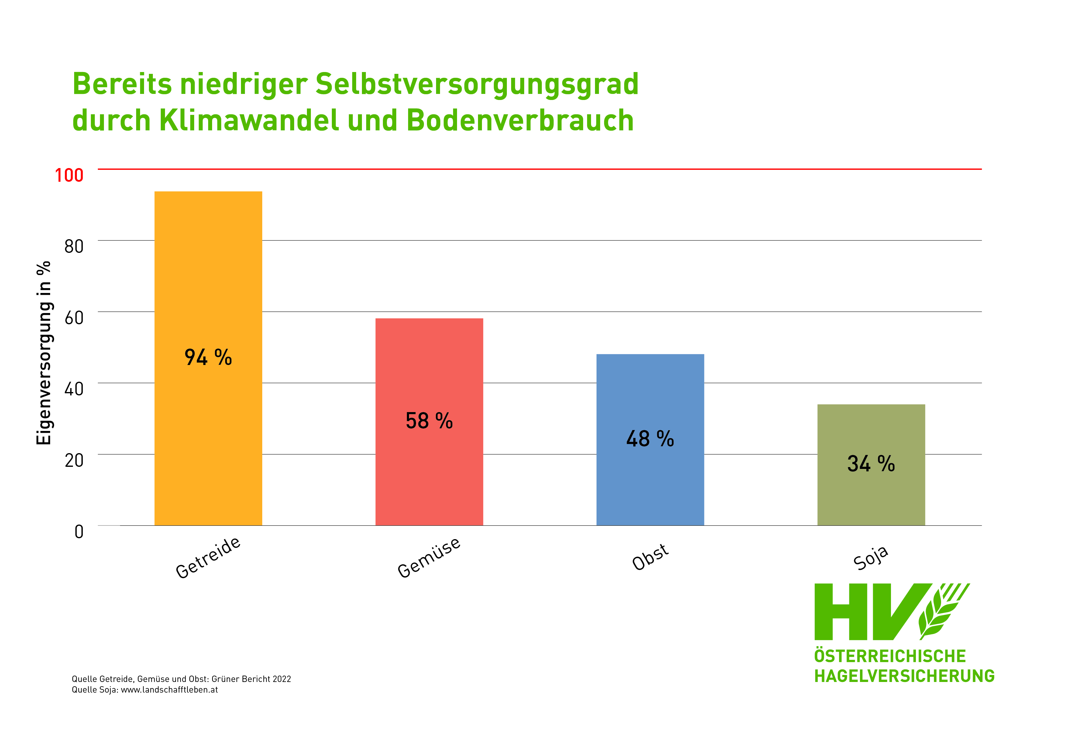 Die Erderwärmung wirkt sich aber nicht nur auf die Landwirtschaft, sondern auch auf die Ernährungssicherheit aus. Die heimische Wirtschaft ist eng mit anderen Regionen der Erde verknüpft. Steigende Lebensmittelpreise sind also die Folge von Missernten und Lieferengpässen bei Zwischenprodukten und Rohstoffen. Die leeren Gemüse- und Obstregale in Großbritannien zeigen uns, dass die Eigenversorgung eines Landes ein wichtiges Sicherheitsthema ist. Ein Land mit immer weniger Selbstversorgung macht sich von Importen abhängig und wird dadurch sehr verletzbar. Maßnahmen gegen die Klimakrise müssen daher nicht nur international, sondern auch national ergriffen werden. „Faktum ist: Es ist billiger, jetzt in Maßnahmen gegen die Erderwärmung zu investieren, als später für die Folgen aufzukommen“, so Weinberger und ergänzt: „Wir haben es auch national selbst in der Hand, denn viele Einzelteile ergeben das Ganze. Beispiel: Wir haben schon jetzt bei vielen Lebens- und Futtermitteln einen niedrigen Selbstversorgungsgrad, beispielsweise bei Getreide von 94 Prozent, bei Gemüse von 58 Prozent, bei Obst von 48 Prozent und bei Soja von 34 Prozent. Wir sind also bereits jetzt abhängig. Daher dürfen wir nicht weiterhin unsere Lebensgrundlage Boden durch brutale Verbauung zerstören. Denn diese ist essentiell für die Lebensmittelproduktion. Zudem ist der Boden ein wichtiger Kohlenstoffspeicher. Der Schutz unseres Bodens vor Verbauung ist eine konkrete Maßnahme im Kampf gegen den Klimawandel. Daher gilt es, jetzt in den Klima- und Bodenschutz mit vielen Einzelmaßnahmen zu investieren. Verabschieden wir uns vom Gedanken, dass Klima- und Bodenschutz eine Gefahr sind. Sie sind vielmehr eine Chance für die Wirtschaft und Landwirtschaft. Ansonsten gefährden wir die Zukunft für unsere kommenden Generationen!“
