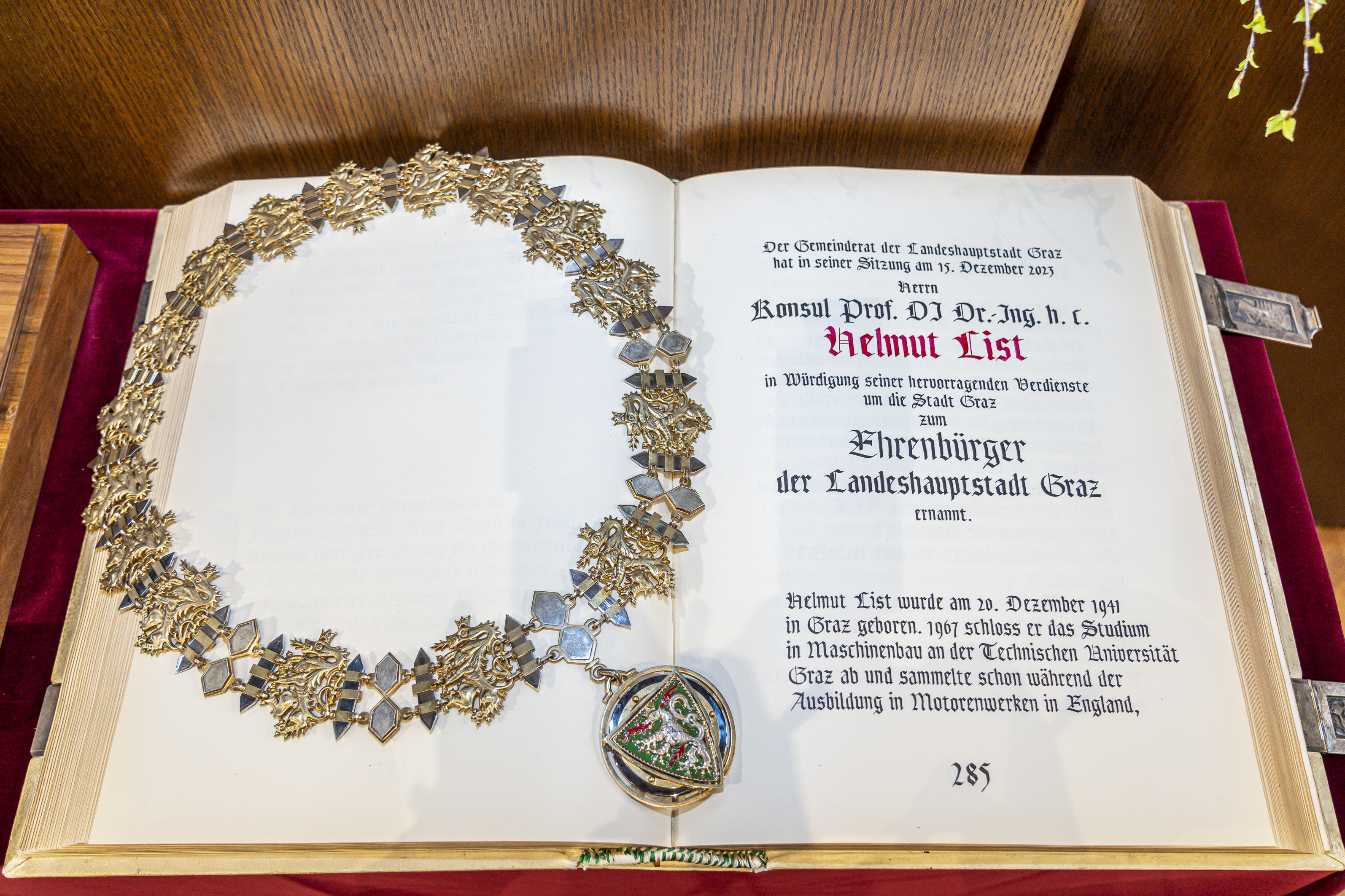 Auf die Worte der Bürgermeisterin folgte die Überreichung der Ehrenbürgerurkunde an Helmut List und dessen Dankesrede an die Festgemeinschaft. Helmut List betonte seine enge Verbundenheit zu der Stadt, die er mit einem Orchester verglich: "Es braucht Musikerinnen, die gemeinsam an einem Ergebnis arbeiten. Menschen müssen sich vernetzen und Ideen teilen, um zusammen etwas Schönes wie eine Symphonie, neue Technologien oder ein einzigartiges Innovationsökosystem zu schaffen." So würden auch in Graz Wissenschaft, Bildung, Kunst und Kultur zusammen an einem Ziel arbeiten. Seit 75 Jahren hat die AVL ihren Standort im Herzen von Graz. "Eine bewusste Entscheidung", wie List betonte.