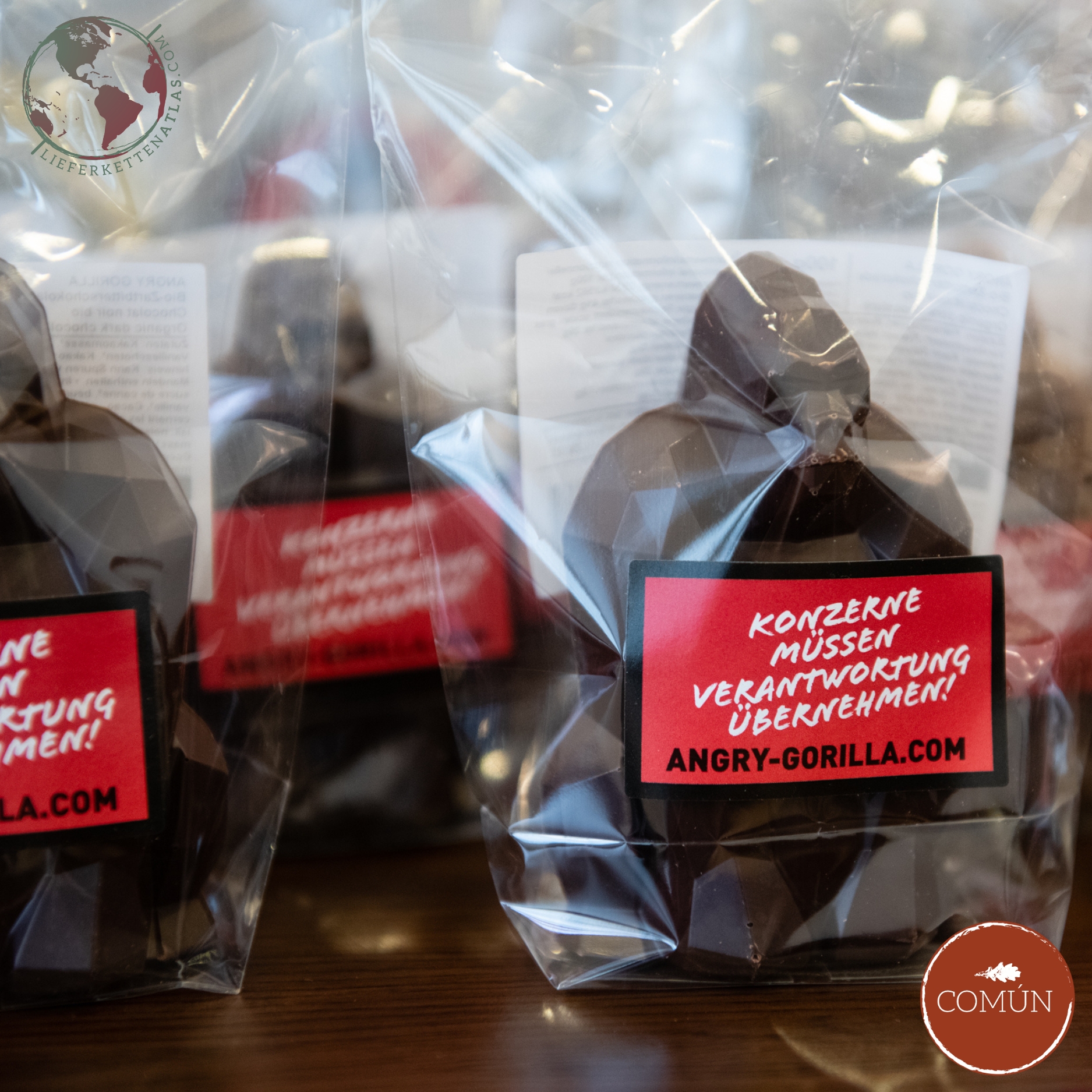 Die Lieferkette der „Angry Gorillas“, die an die Wirtschaftsbund-Abgeordneten verschenkt werden, ist im Gegensatz zu anderen konventionellen Schokolade-Produkten, die rund um Ostern konsumiert werden, zu 100 Prozent transparent. Die Erzeugung des Gorillas erfolgt nachweislich auf eine sozial wie ökologisch möglichst gerechte Weise und befördert zudem existenzsichernde Löhne für Kakaobauern. Alle Informationen zu den Schattenseiten konventioneller Schokolade, zur Kampagne für ein Lieferkettengesetz und zur Lieferkette der Gorillas, finden sich unter www.lieferkettenatlas.com/kakao.