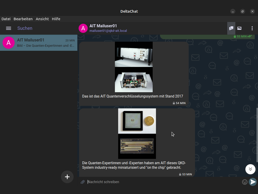 Am 23. Februar 2023 demonstrierten das AIT Austrian Institute of Technology und der Konsortialpartner X-Net Services GmbH gemeinsam mit dem Bundesministerium für Klimaschutz, Umwelt, Energie, Mobilität, Innovation und Technologie (BMK) als Early Adopter die Zukunft hochsicherer Behördenkommunikation auf Basis der modernsten Kommunikations- und Verschlüsselungstechnologie der Welt. Im Rahmen einer Livedemonstration wurden Nachrichten über einen Chat zwischen dem AIT und dem BMK ausgetauscht. Die Verschlüsselung dieser Daten-Kommunikation erfolgte technologisch mit Quanten-gesicherter Kryptografie. Diese ermöglicht die Erzeugung einer sehr hohen Anzahl verschiedener hochsicherer und unabhängiger Schlüssel und erreicht damit eine wesentlich höhere Abhörsicherheit sowohl für Ende-zu-Ende gesicherte Datenkommunikation als auch für Datenverarbeitung. Vor dem Hintergrund künftig eingesetzter Quantencomputer ist dies eine wichtige Zukunftstechnologie, um die Datensouveränität in Österreich und in Europa nachhaltig sicherzustellen. Die Entwicklungsaktivitäten rund um diese zu Testzwecken aufgebaute Kommunikationsinfrastruktur zwischen den beiden genannten Akteuren, als auch die Technologieevaluierung der Quantenverschlüsselung im Zusammenspiel mit kommerziellen Systemen erfolgten im Projekt „QKD4GOV - Sicherung von Behördendaten mittels quanten-sicherer Kryptographie“ (Detailinformationen sind hier zu finden). Das Projekt adressiert die Übermittlung vertraulicher Informationen zwischen Behörden in verschiedenen Einsatzszenarien und wird im KIRAS Förderprogramm für Sicherheitsforschung des BMF finanziert.