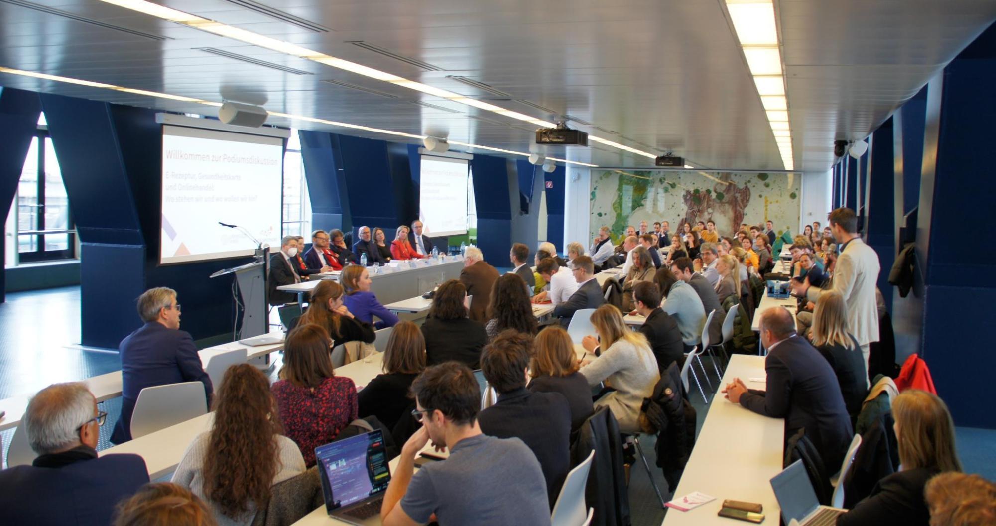 Die Expertendiskussion auf Einladung der Universität Wien fand am 28. März 2023 im Dachgeschoss des Juridicums in Kooperation mit Shop Apotheke Europe statt. Das hohe Interesse am Thema wurde unter anderem durch mehr als 100 Teilnehmer:innen vor Ort und mehr als weitere 50 Live- Onlineteilnehmern:innen verdeutlicht. Unter der Moderation von Gastgeber Univ.-Prof. Dr. Nikolaus Forgó, Institut für Innovation und Digitalisierung im Recht Universität Wien) diskutierten Univ. Prof. Dr. Ruth Ladenstein, MBA, cPM (OKIDS Geschäftsführung, St. Anna Kinderkrebsforschung GmbH), Hofrat Hon.-Prof. Dr. Johannes Zahrl (Kammeramtsdirektor, Österreichische Ärztekammer), DDr. Meinhild Hausreither (Sektionsleitung Humanmedizinrecht und Gesundheitstelematik, BMSGPK), Univ.-Prof. Dr. Barbara Prainsack (Universität Wien, Vorständin Institut für Politikwissenschaften), Univ.-Prof. Dr. Herwig Ostermann (Geschäftsführung, GÖG – Gesundheit Österreich GmbH), Jürgen Holzinger (Chronisch Krank) und Charlotte van Velthoven (Shop Apotheke Europe).