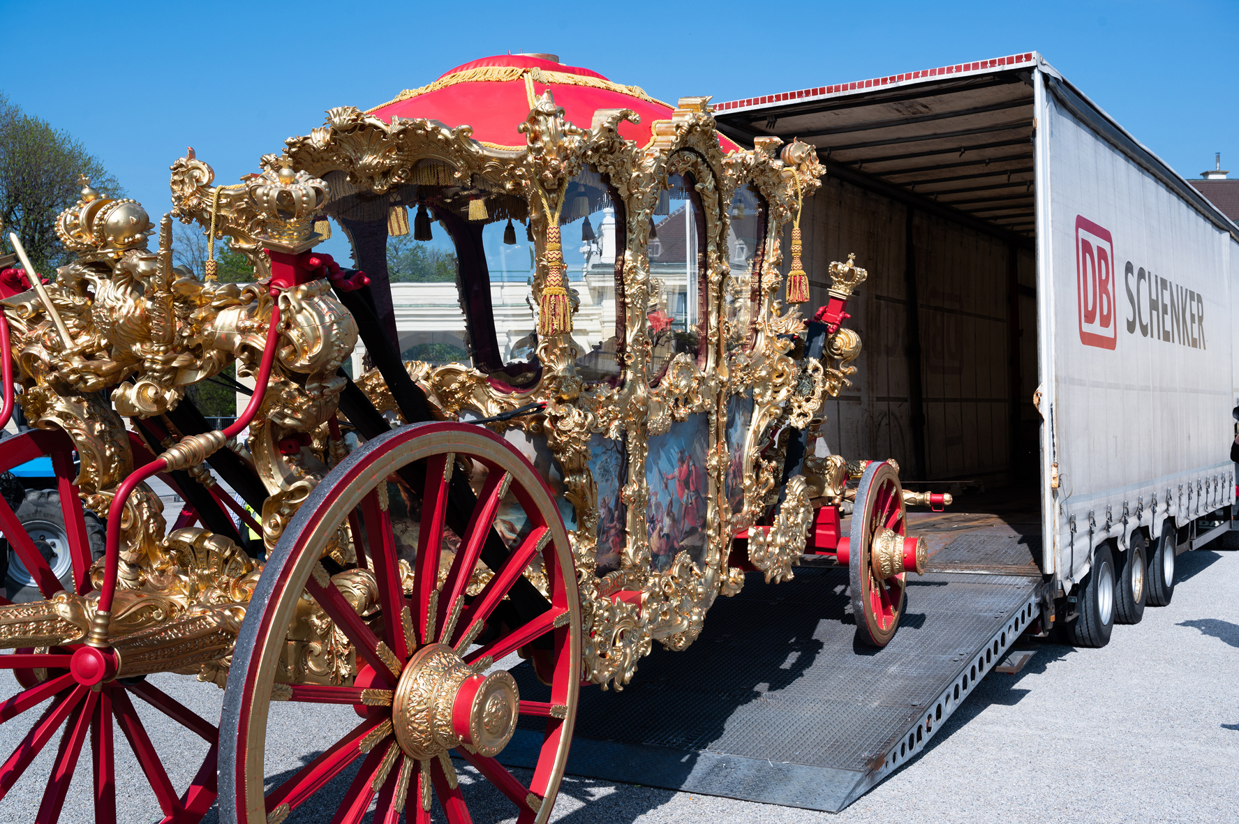 Dabei liefert DB Schenker Kutschen aus Ungarn, eine Kutsche aus Tschechien, zwei Kutschen aus der Weststeiermark vom Lipizzaner Gestüt Piber, zwei Kutschen vom Kutschenmuseum Laa an der Thaya sowie einen extra angefertigten Nachbau der kaiserlichen Imperial-Kutsche quer durch ganz Wien. Um einen sicheren und zeitgerechten Transport der tonnenschweren Ware zu garantieren, ist ein perfektes Zeitmanagement von den Experten von DB Schenker nötig, da vor Ort nur wenig Platz zur Verfügung steht und die Kutschen innerhalb eines exakten Zeitplans an- und abtransportiert werden müssen. Es benötigt aber auch ein besonderes Fingerspitzengefühl bei der Be- und Entladung der meterlangen Kutschen, denn die Auffahrtsrampen der Tieflader müssen so flach wie möglich gehalten werden, um die Achsen zu schützen und einen unversehrten Transport zu gewährleisten.