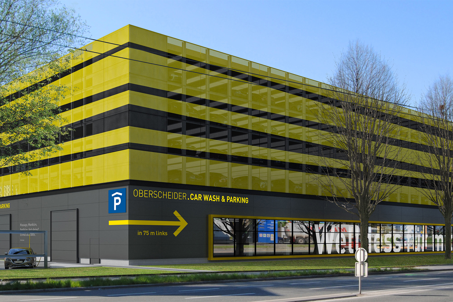 Am Gebäude der Waschanlage in Salzburg wurde ein vierstöckiges Parkhaus mit dreihundertzwanzig Premium-Stellplätzen errichtet. Premium deshalb, da auch hier der „Oberscheider-Wohlfühlfaktor“ an erster Stelle steht. Die Stellplätze sind extrabreit, das garantiert bequemes Ein- und Aussteigen beim Parken.