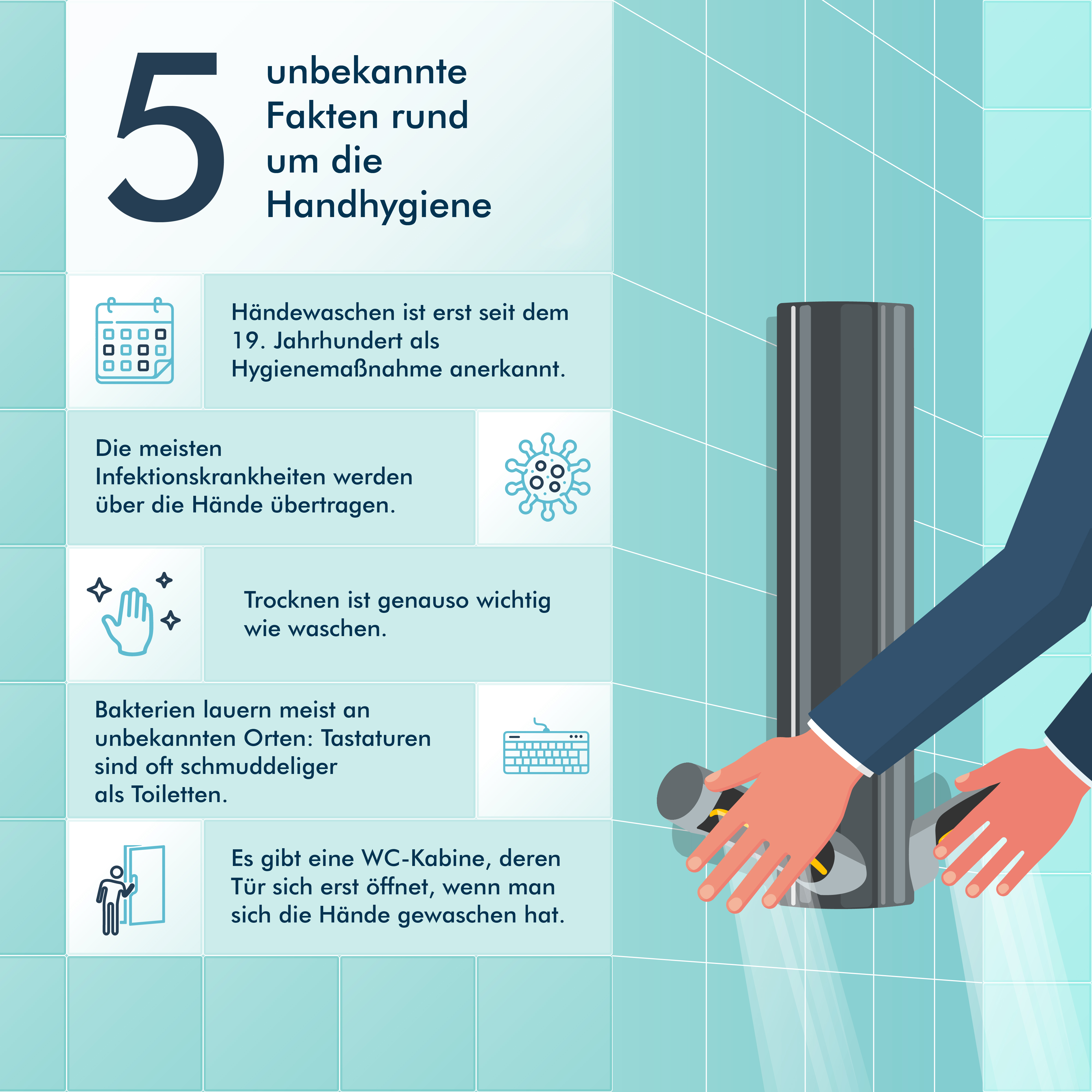 - Trocknen ist genauso wichtig wie waschen Nicht nur das Händewaschen ist notwendig, um Infektionen vorzubeugen und Bakterien von den Händen zu entfernen. Was vielen nicht bewusst ist: Feuchte Hände können bis zu 1.000-mal mehr Bakterien verbreiten als trockene - somit steigt die Infektionsgefahr erheblich, wenn man der Trocknung nicht genug Aufmerksamkeit beimisst. Das bloße Ausschütteln der Hände nach dem Waschen reicht dazu nicht aus.