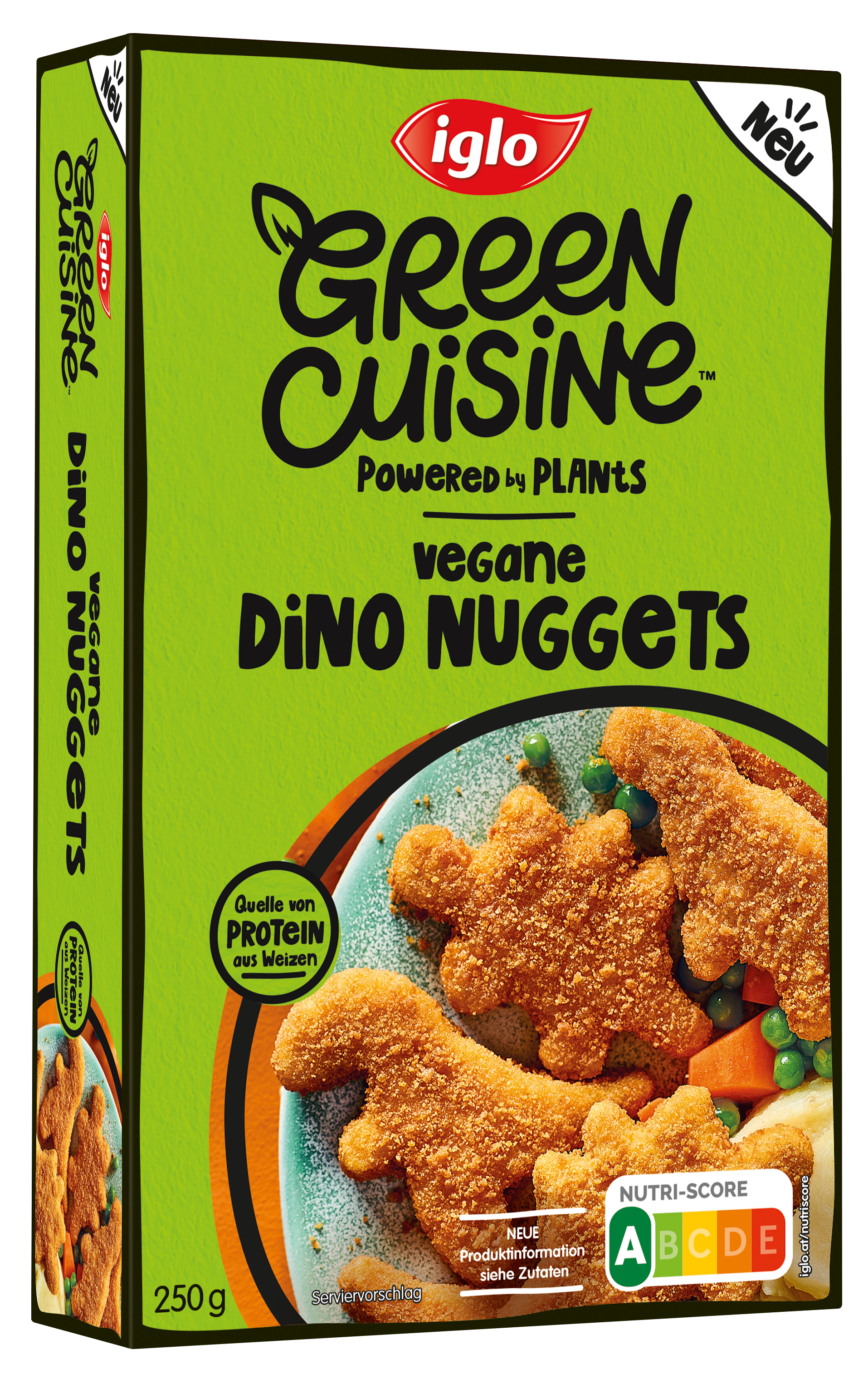 Mit Green Cuisine ist iglo Marktführer für Fleischalternativen in der Tiefkühlung. Ob Gemüsestangerl, vegane Burger Laibchen, Bratwürstel, Fischstäbchen oder Schnitzerl, vegetarische Nuggets oder Falafel Bällchen, das iglo Green Cuisine-Sortiment bietet viele Möglichkeiten, Fleisch am Teller zu ersetzen. Der neueste Zugang im Sortiment macht nicht nur geschmacklich, sondern auch optisch auf sich aufmerksam: Die veganen Nuggets in Form von Dinosauriern sind knusprig paniert, einfach zuzubereiten – auch im Backrohr – und punkten mit Nutri-Score A.
