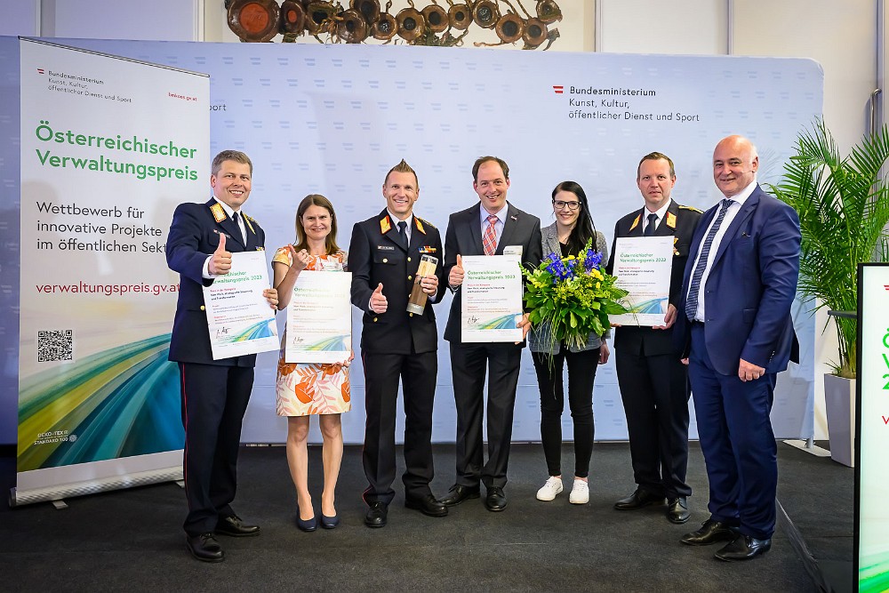 Der Österreichische Verwaltungspreis prämiert Innovations- und Kooperationsprojekte von Bund, Ländern und Gemeinden. Der Verwaltungswettbewerb hat das Ziel, Innovationen in der Verwaltung zu bestärken, zu fördern und öffentlich vorzustellen. Der Preis wurde vom Bundesminister für Kunst, Kultur, Öffentlichen Dienst und Sport, Vizekanzler Werner Kogler, überreicht.
