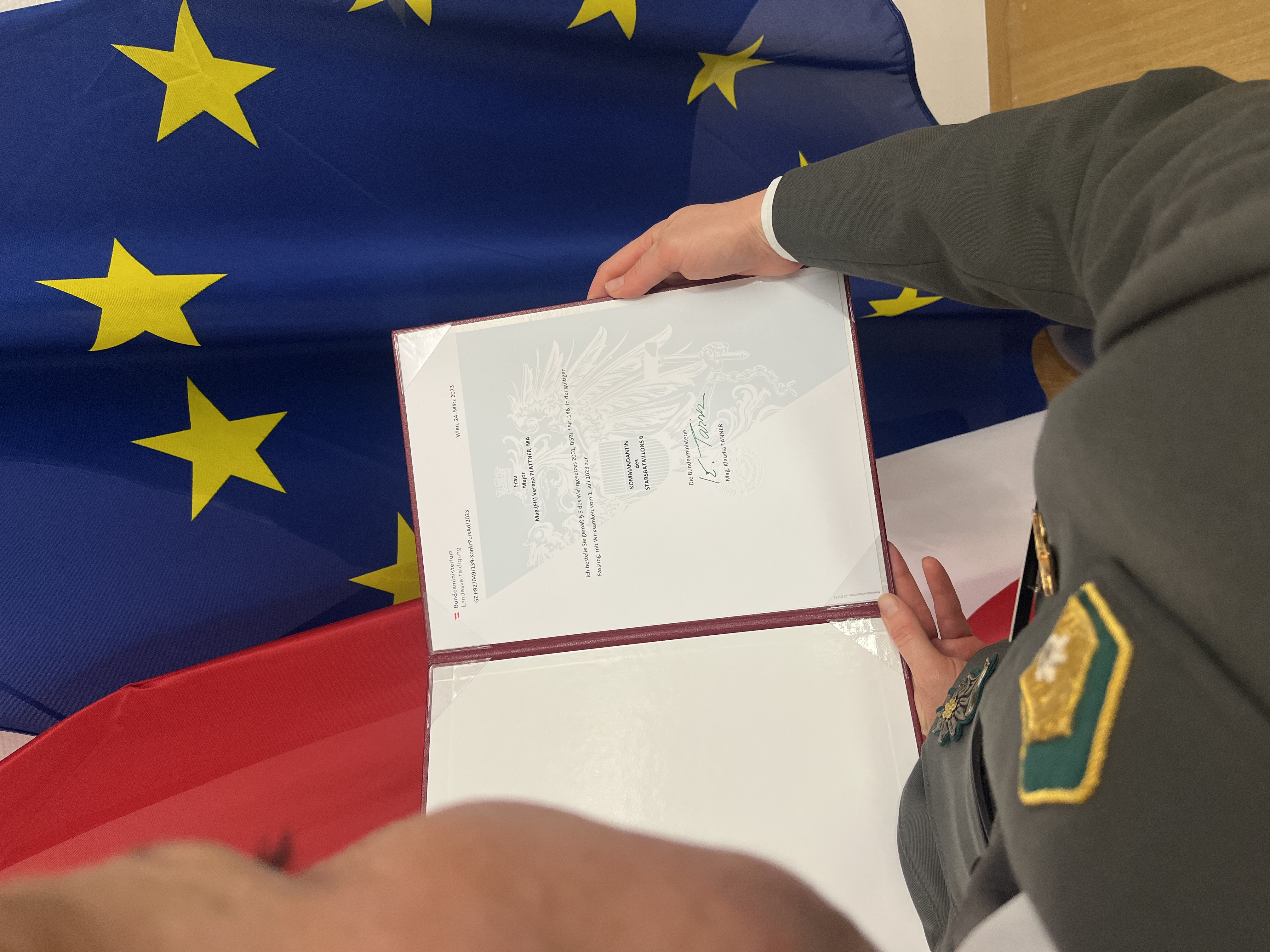 Mit der feierlichen Kommandoübergabe am Donnerstag, 13. Juli 2023, ist Frau Major Verena Plattner die erste Frau an der Spitze des Stabsbataillons 6 in Innsbruck. Damit ist sie auch die erste Bataillonskommandantin österreichweit beim Österreichischen Bundesheer. Verteidigungsministerin Klaudia Tanner hat sich bereits im Februar dazu entschieden, das Stabsbataillon 6 der Gebirgsbrigade ab 1. Juli 2023 erstmals mit einer Frau zu besetzen.