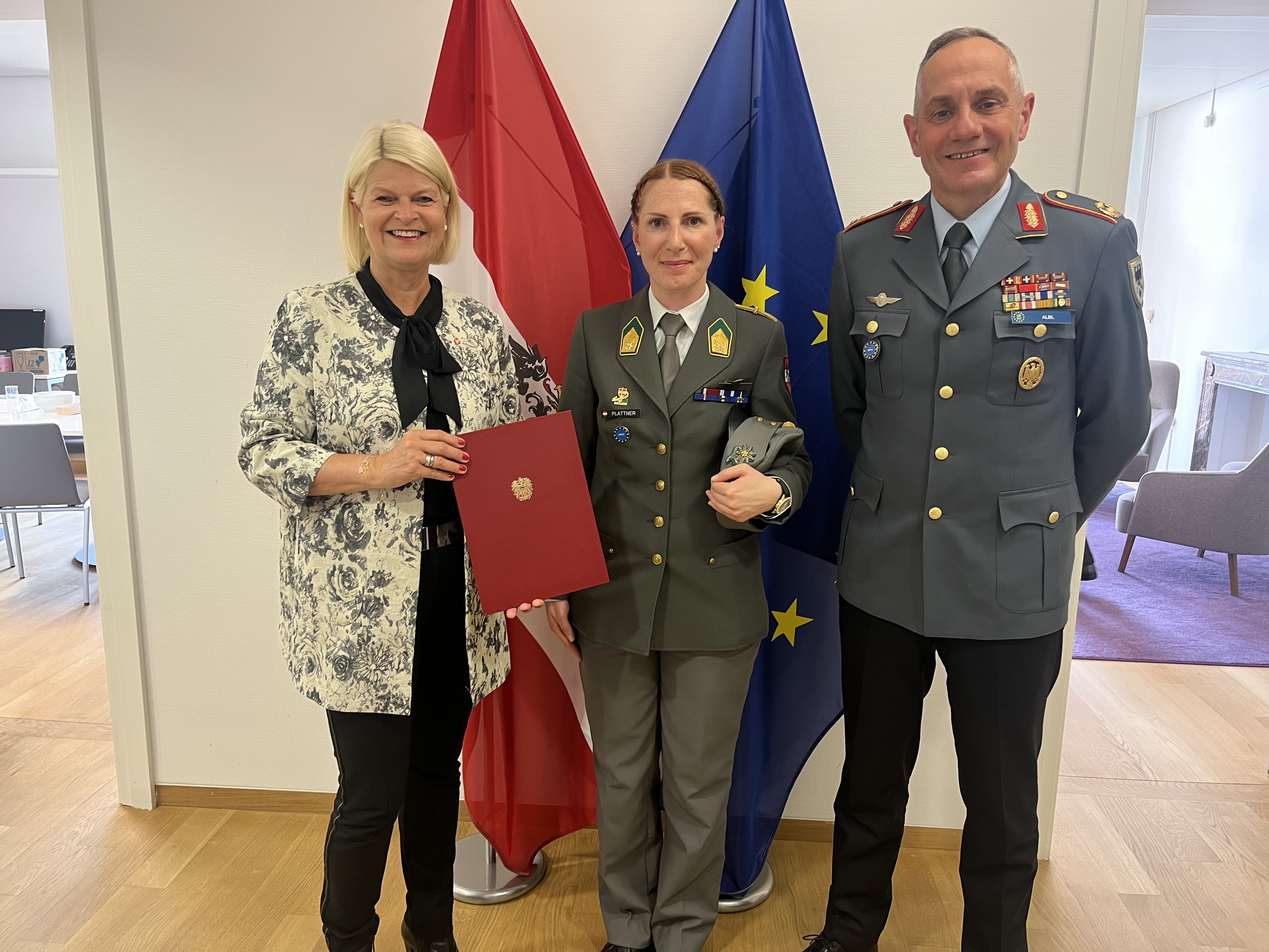 Bereits 2002 bekleidete sie die Funktion der Gruppenkommandantin beim Jägerbataillon 23 in Bludesch. Von 2008 bis 2011 war sie als Kompaniekommandantin für die Führung der Kampfunterstützungskompanie verantwortlich. Neben Führungsfunktionen auf unterschiedlichen Ebenen kann Major Plattner auch mehrere Auslandseinsätze (EUFOR Althea in Bosnien und Herzegowina, KFOR im Kosovo), wie auch die Teilnahme an diversen internationalen Übungen, aufweisen. Bis 1. Juli 2023 wird Major Plattner ihre Aufgaben im Rahmen der Auslandsverwendung in Brüssel abschließen, bevor sie dann für die neue Funktion nach Österreich zurückkehrt.