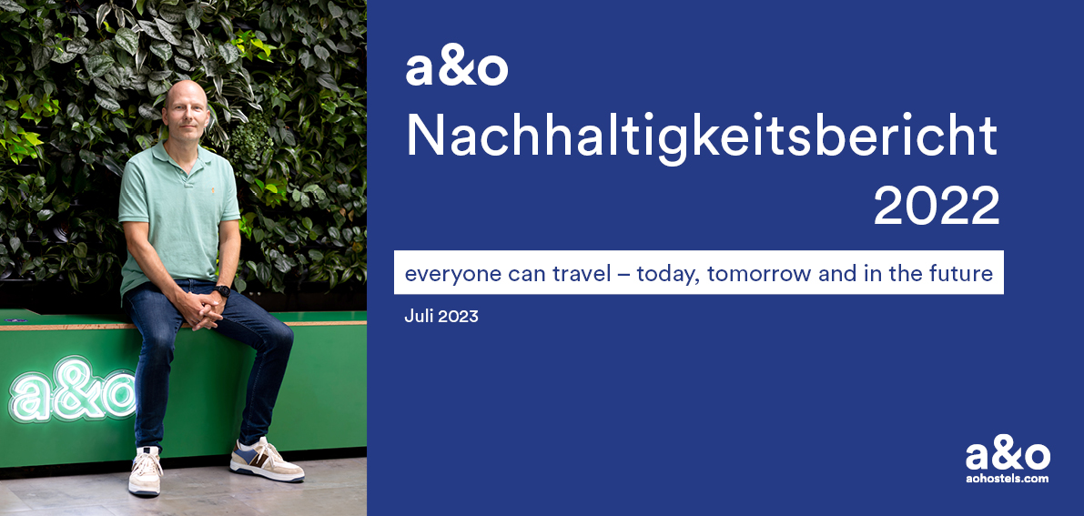 „Everyone can travel – today, tomorrow and in the future“ – für ihren ersten Nachhaltigkeitsbericht hat die Hostelkette a&o ihr Motto um eine klare Botschaft ergänzt. Gründer und CEO Oliver Winter betont: „Wir sind uns unserer Verantwortung bewusst und tun alles dafür, dass Menschen auch in Zukunft reisen können.“ Der 30-seitige Report gibt einen detaillierten Überblick über die zentralen strategischen Nachhaltigkeitsthemen, über realisierte und geplante Maßnahmen, erreichte Effekte und neue Ziele. Zu den zentralen Initiativen gehören u.a. Modernisierung der Häuser; Steigerung der Gebäudeeffizienz; Entwicklung und Einführung eines Integritätskodex für Mitarbeiter und verantwortungsvolles Procurement.