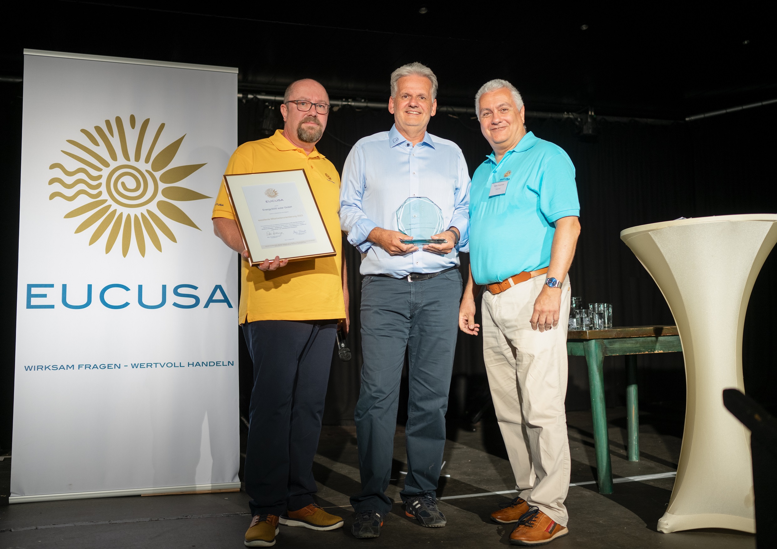 Die Energy3000 solar GmbH mit Sitz in Müllendorf im Burgenland wurde mit dem EUCUSA Award für „exzellente Mitarbeiterorientierung 2023“ ausgezeichnet. Es konnten bei der 2023 durchgeführten Mitarbeiterbefragung zehn neue Benchmarks in der internationalen EUCUSA-Datenbank gesetzt werden, unter anderem bei den Aspekten „Attraktiver Arbeitgeber“, „Gehaltsniveau“, „Vertrauen in Geschäftsleitung“ „Loyalität zum Unternehmen“ und „Zukunftssicherer Arbeitsplatz“.