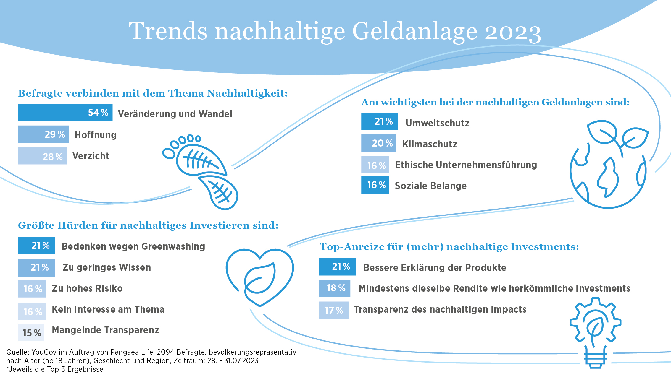 Quelle aller Daten aus der Studie: YouGov im Auftrag von Pangaea Life, 2094 Befragte, bevölkerungsrepräsentativ nach Alter (ab 18 Jahren), Geschlecht und Region, Zeitraum: 28. - 31.07.2023