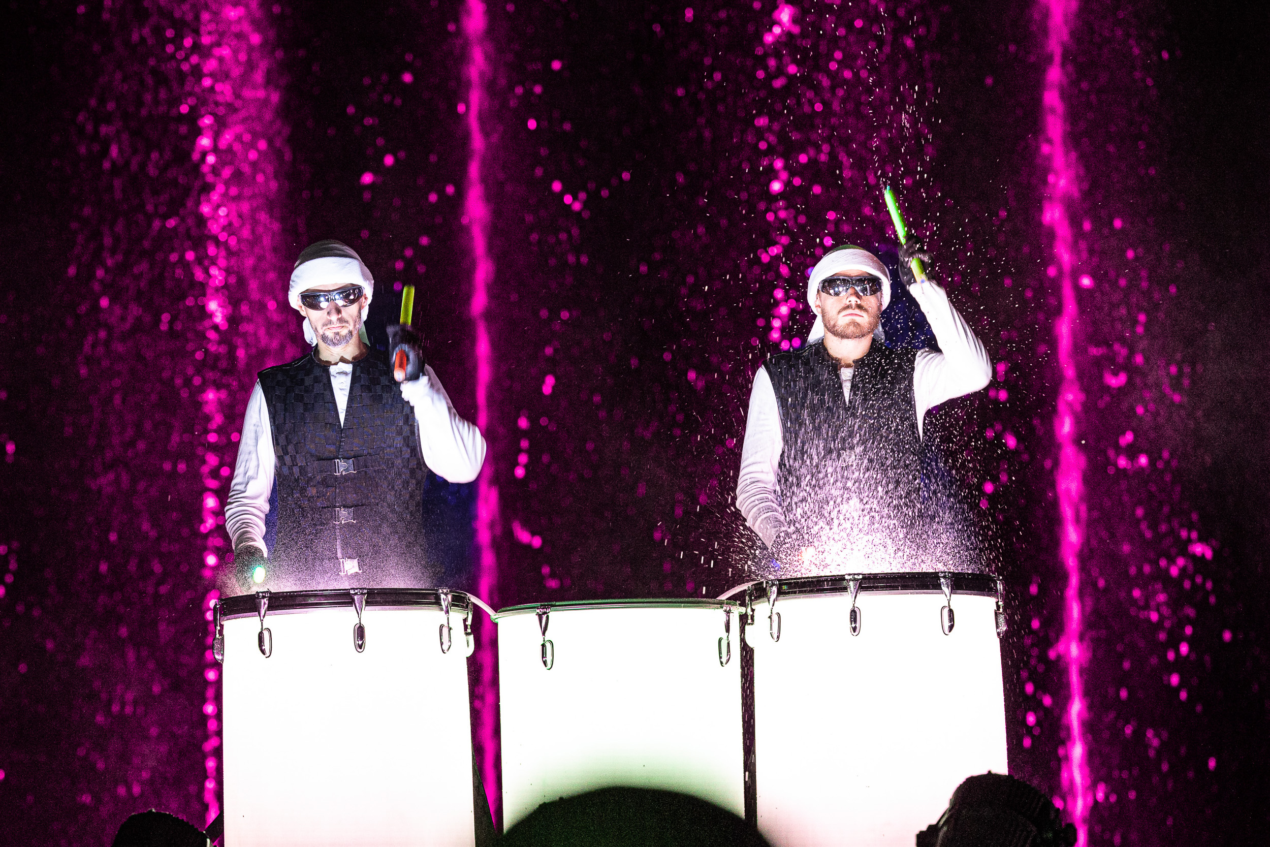 Highlight der Klangwelle sind die atemberaubenden Live-Performances der Seilakrobaten Duo Aquarius, des Slacklineartisten Moritz Purer und des Feuerkünstlers ENIGMA. Auf drei Bühnen gleichzeitig geben die bekannten Drumaticals ihr Trommelshow zum Besten. Die Sängerin Domino Blue ist in einem Federkostüm bekleidet zu bestaunen.