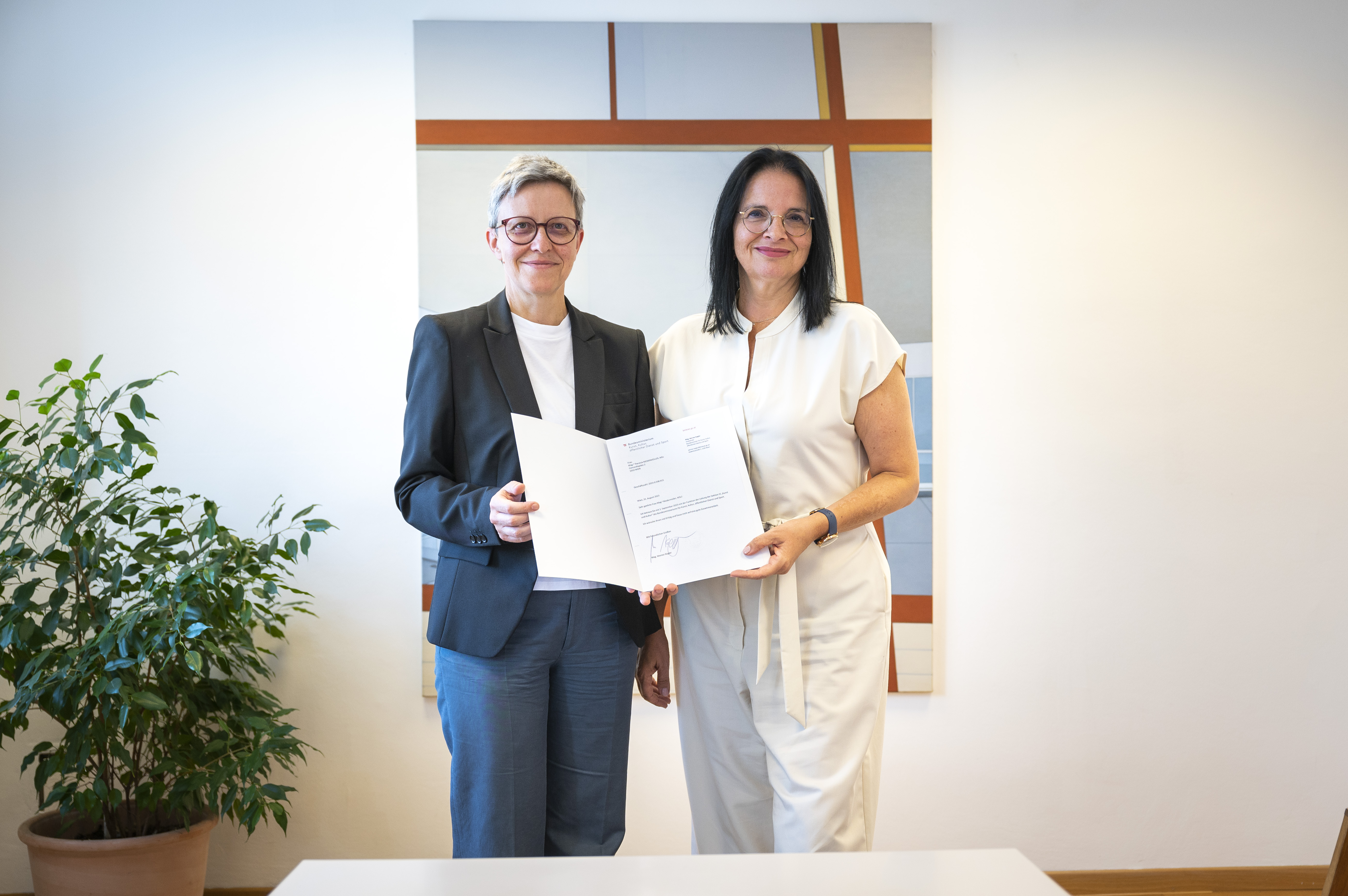 „Die Kunst- und Kulturszene habe ich seit meinem Start in der Sektion im Juni 2015 sehr gut kennen gelernt, privat begleiten mich Kunst und Kultur seit langem. Ich freue mich über das entgegengebrachte Vertrauen und auf die Arbeit mit dem hervorragenden Team der Sektion“, so die neue Sektionsleiterin zu ihrer Bestellung. „Es ist eine Aufgabe, die eine große Verantwortung für einen enorm wichtigen Bereich unserer Gesellschaft mit sich bringt.“