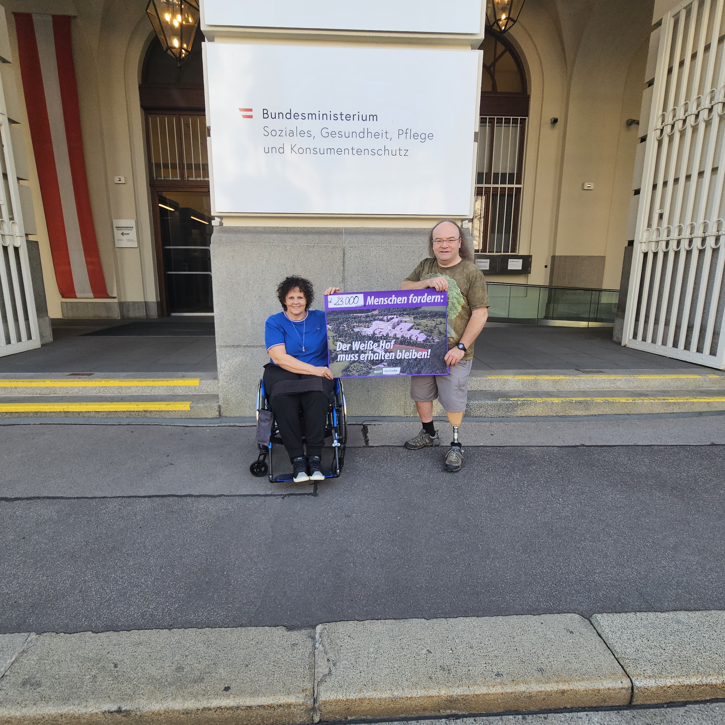 Am 15.9.2023 konnten Herr Ing. Musska und Frau Mag. Prager-Schugardt dem Bundesministerium für Soziales die Unterschriften der Petition für den Weißen Hof überreichen und ein ausführliches Gespräch mit der Sektion 2 führen.