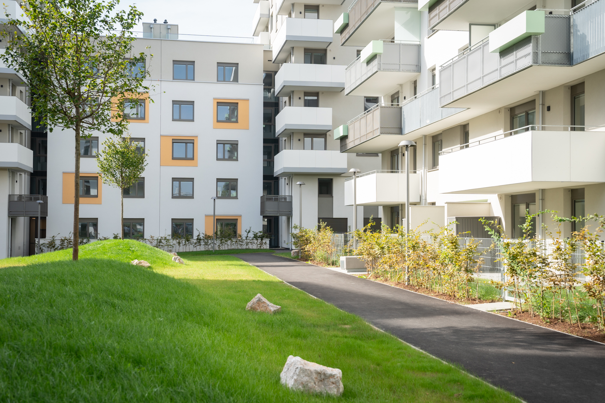 Im Freibereich des bewusst sehr offen gestalteten und modellierten Innenbereichs der Wohnhausanlage finden sich zahlreiche Verweilräume, sowohl für Kinder und Jugendliche als auch für Erwachsene. Auch hieran ist abzulesen, welche hohe Lebensqualität für die künftigen Bewohnerinnen und Bewohner geschaffen wurde. Das betonten auch Vizebürgermeisterin und Wohnbaustadträtin Kathrin Gaál, Bezirksvorsteher Gerald Bischof und „Wien-Süd“-Vorstandsvorsitzender Andreas Weikhart in ihren Pressestatements.