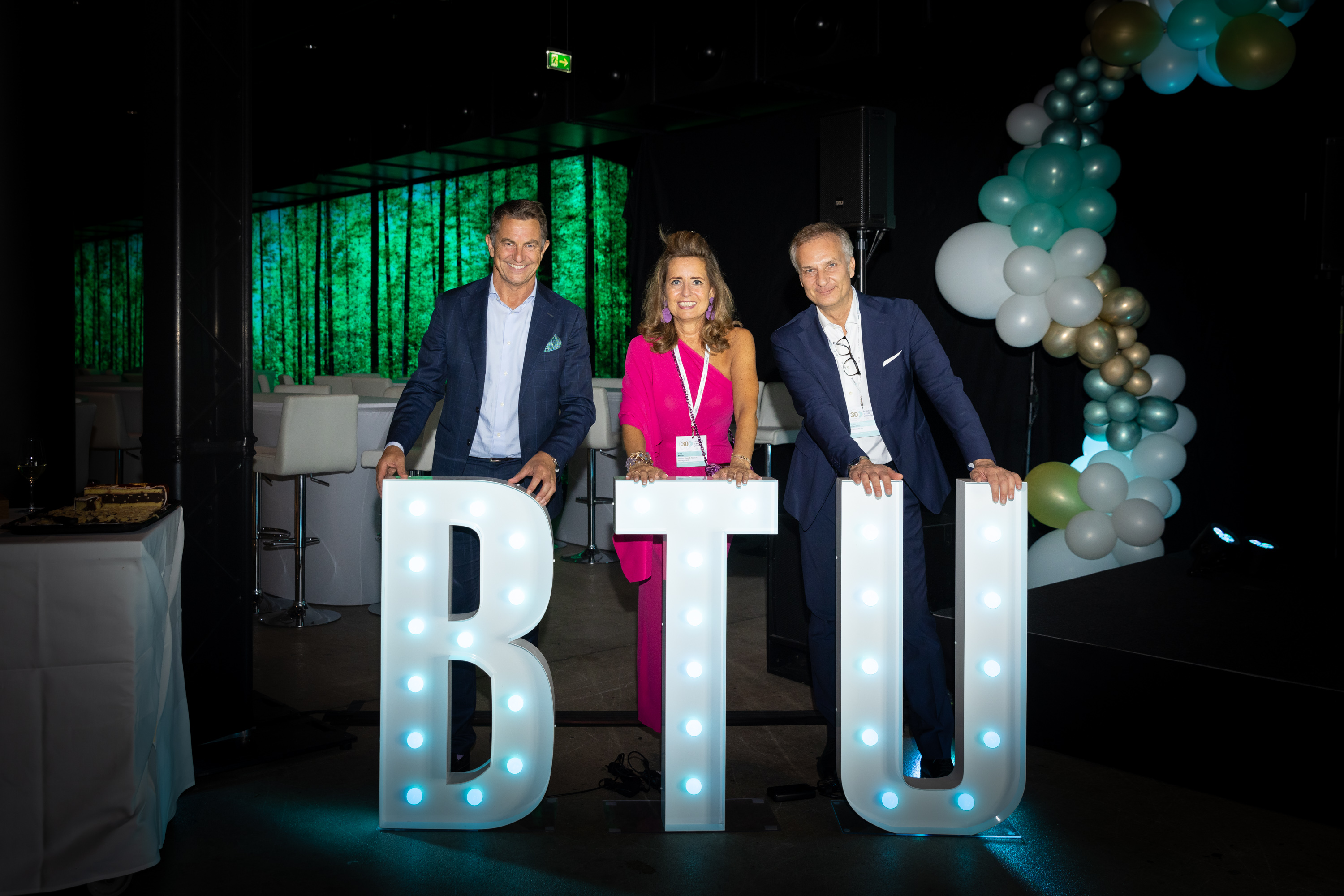 Bei der großen 30-Jahr-Feier hatten auch namhafte Partner von BTU Gelegenheit, ihre Wiener Teams und ihre Neuigkeiten vorzustellen. Mit großzügigen Tombola-Preisen gewannen sie Sympathiepunkte auf Kundenseite sowie bei Mitarbeiterinnen und Mitarbeitern der BTU. Vertreten waren die Lufthansa-Gruppe mit Austrian Airlines, Emirates, Air France, KLM, Qatar, Singapore Airlines, die ÖBB und das touristische Partnerunternehmen „Die Reiserei“.