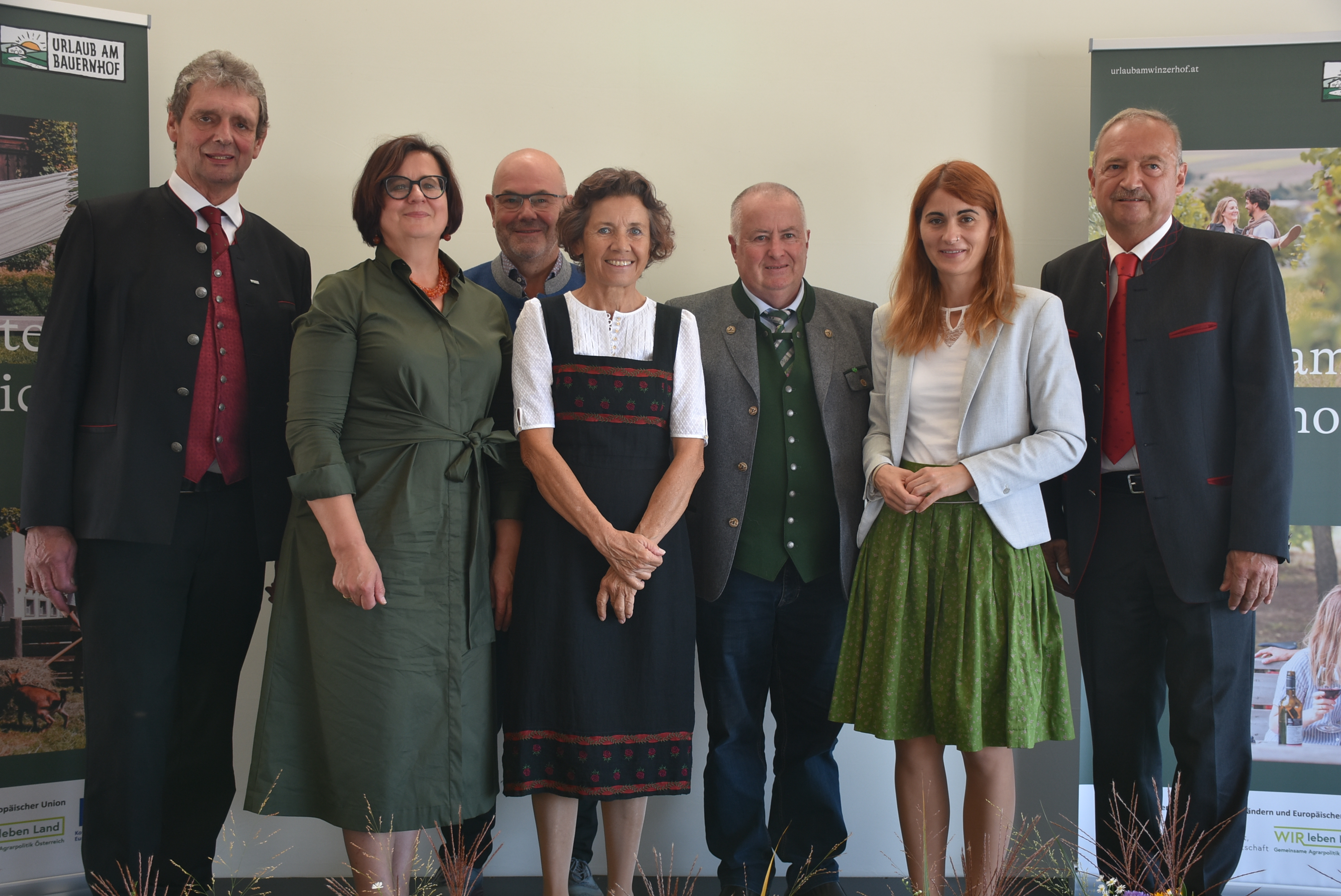 v.l.n.r: Ing. Franz Perner (Wirtschaftskammer Bgld, Sparte Tourismus und Freizeitwirtschaft), Johann Hörtnagl (Obmann Urlaub am Bauernhof Österreich), Josefine Klose (Mitarbeiterin UaB Burgenland), DI Dorothea Jagschitz (Obfrau UaB Burgenland und stv. Obfrau UaB Österreich), Mag. Petra Denk (GF UaB Burgenland), Dietlinde Koch (stv. Obfrau UaB Burgenland), Ing. Werner Falb-Meixner (Vizepräsident der LK Bgld.), DI Martin Burjan (Kammerdirektor LK Burgenland)