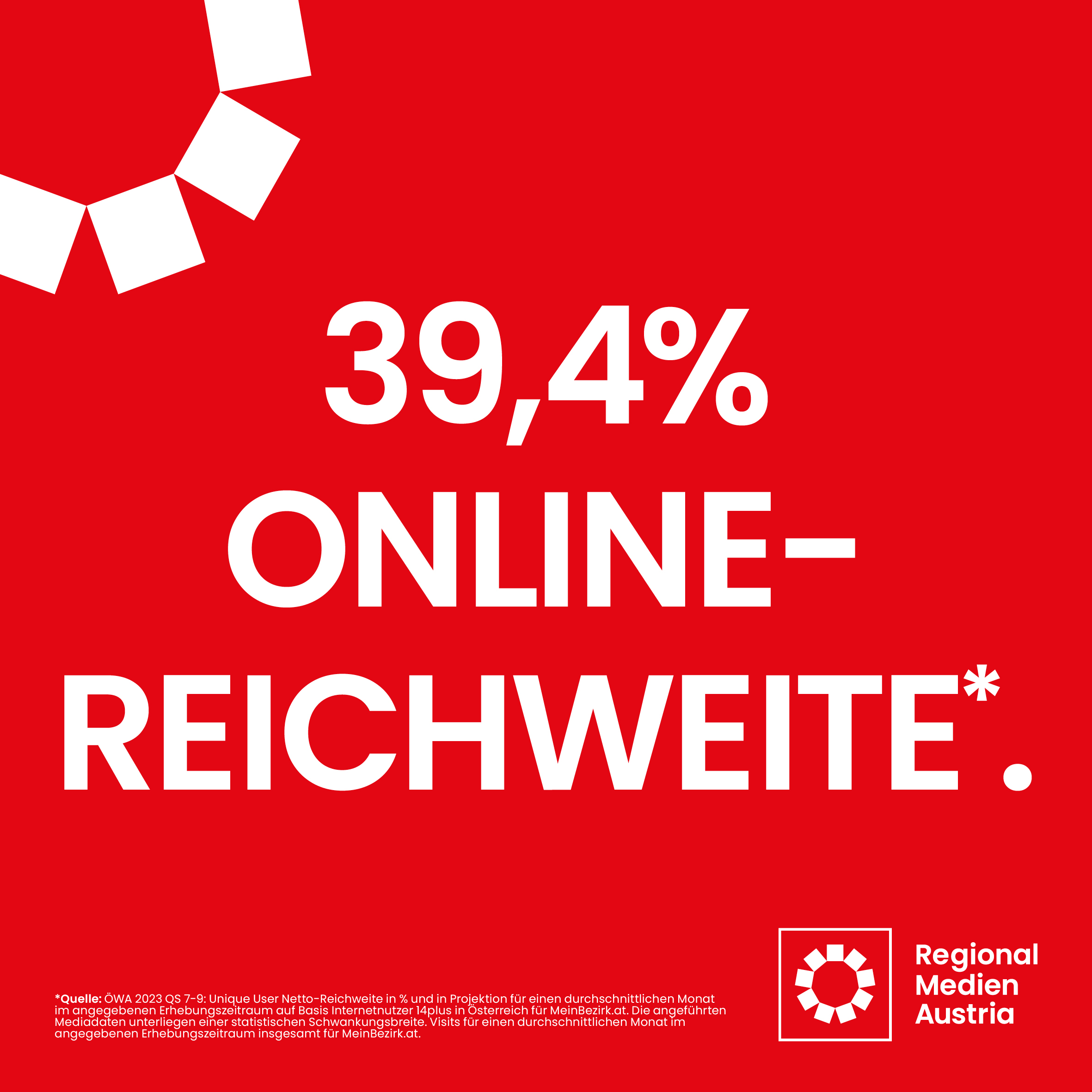 **Quelle: ÖWA 2022 QS 7-9: 2,314 Mio Unique User Netto-Reichweite in Projektion für einen durchschnittlichen Monat im angegebenen Erhebungszeitraum auf Basis Internetnutzer 14plus in Österreich für MeinBezirk.at. Die angeführten Mediadaten unterliegen einer statistischen Schwankungsbreite. Die angeführten Mediadaten unterliegen einer statistischen Schwankungsbreite. MeinBezirk.at ist die Online-Plattform von RegionalMedien Austria gesamt.