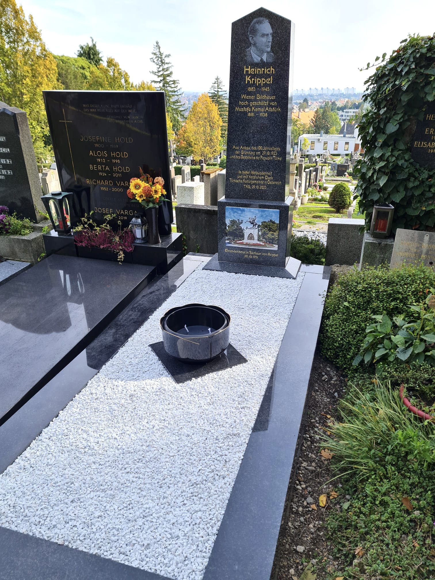 Nachdem das Grab von Heinrich Krippel im Jahr 2015 verkauft wurde, da es keine lebenden Verwandten mehr gibt, die für die jährlich anfallenden Grabkosten aufkommen können, hat sich die Türkische Kulturgemeinde in Österreich (TKG) entschlossen, anlässlich des heurigen 100. Geburtstages des Bildhauers Atatürk - der in den Jahren 1926-1937 in seiner Galerie in der Auhofstraße seine sieben brillanten Denkmäler schuf - dessen letzte Ruhestätte an der gleichen Stelle seines ehemaligen Grabes ohne Fremdfinanzierung neu zu errichten. Anlässlich der Fertigstellung der Grabstätte am 29.10.2023 wird es eine kurze Zeremonie mit Gebeten und einer Schweigeminute geben.