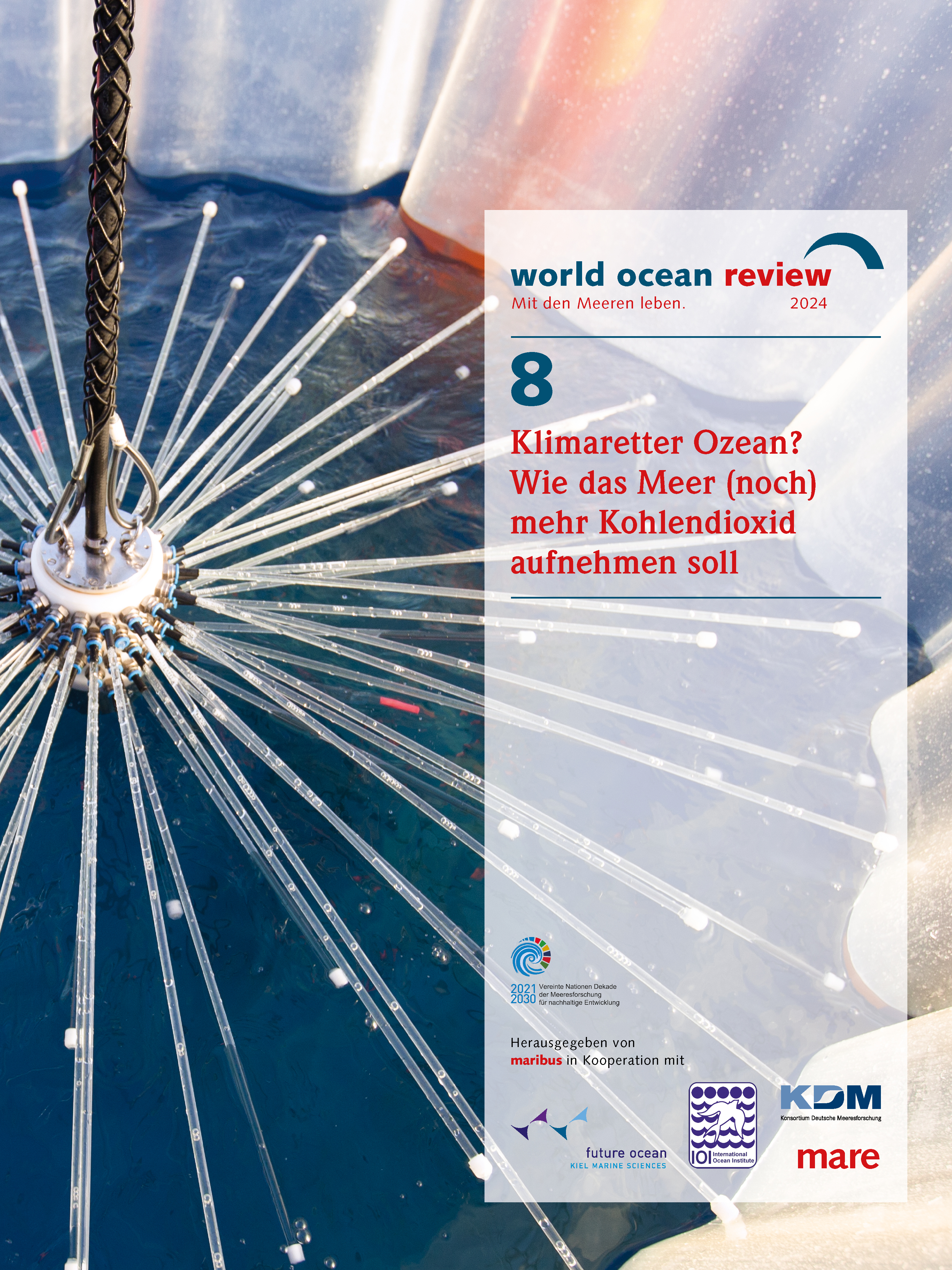 Aufgrund dieser Brisanz und der anstehenden schwierigen Entscheidungen im Rahmen des Klimaschutzes, widmet sich der achte „World Ocean Review“ ausschließlich dem Thema „Kohlendioxid-Entnahme“. Unterstützt von mehr als 20 Wissenschaftlern und Wissenschaftlerinnen erläutert er die Dringlichkeit wirksamer Klimaschutzmaßnahmen und erklärt, wie der Ozean Kohlendioxid aufnimmt und für lange Zeit speichert. Er beschreibt das CO2-Aufnahmepotenzial der Landvegetation, diskutiert, warum das Meer in Sachen Klimaschutz in den Fokus gerückt ist und stellt im Anschluss vielversprechende marine CO2-Entnahme- und Speicherverfahren im Detail vor, angefangen von der Wiederherstellung und Ausweitung artenreicher Küstenökosysteme über Eingriffe in die Meereschemie (Alkalinitätserhöhung) bis hin zur CO2-Speicherung im tiefen Meeresuntergrund. Zum Abschluss geht er auf wichtige Leitprinzipien und Regeln ein, die nach Ansicht der Wissenschaft etabliert werden müssen, sollte sich die Gesellschaft eines Tages für einen Einsatz mariner CDR-Verfahren entscheiden.