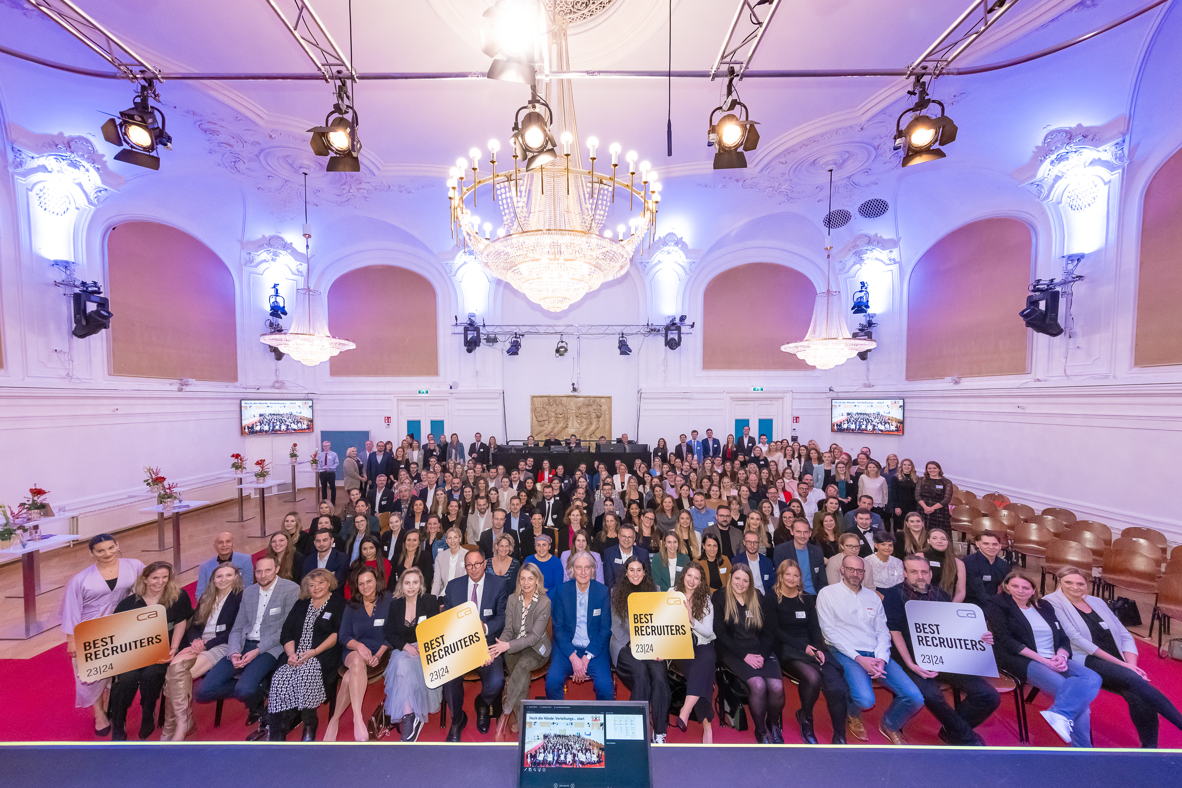 Zum vierzehnten Mal in Folge hat die BEST-RECRUITERS-Studie 2023/24 die Recruiting-Prozesse der 570 größten Unternehmen und Institutionen in Österreich untersucht. Unter den rund 300 Gästen im Lorely-Saal befanden sich neben Vertretern aus Human Resources und Führungspositionen der größten Arbeitgeber des Landes auch AMS-Vorstand Dr. Johannes Kopf, WKÖ-GS-Stellvertreterin Mag. Mariana Kühnel sowie die wissenschaftlichen Beiräte Prof. Dr. Wolfgang Elšik, stellvertretender Institutsvorstand am Institut für Personalmanagement, WU Wien und Prof. Mag. Dr. Silvia Ettl-Huber, Studiengangsleiterin und Departmentleiterin Wirtschaft, FH Burgenland.