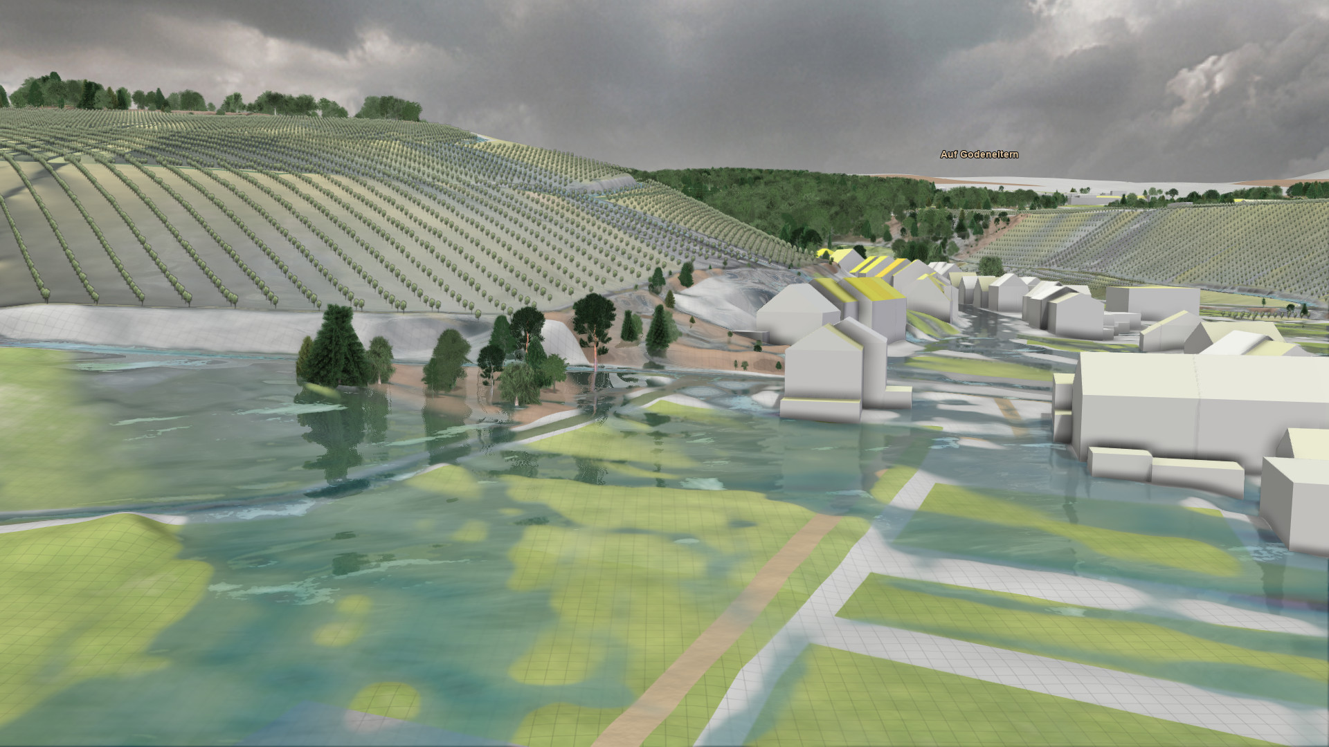 Strategien zur Klimawandelanpassung sind ein essenzieller Schritt – in der Vorsorge für Extremwetterereignisse, um mit Risikokommunikation für Hochwasser oder Starkregen zu sensibilisieren und um notwendige Schutzmaßnahmen zu planen. Das Ministerium für Klimaschutz, Umwelt, Energie und Mobilität (MKUEM) des deutschen Bundeslandes Rheinland-Pfalz setzt im Rahmen seiner Digitalisierungsstrategie auf die hydrodynamische Modellierungssoftware Visdom des VRVis Zentrum für Virtual Reality und Visualisierung. Mit Hilfe von Visdom wird ein bundeslandweites Starkregen- und Hochwassermodell entwickelt, welches auf einem digitalen Hydro-Zwilling basiert. Dieser wird laufend angepasst, optimiert und kann von unterschiedlichen Gruppen genutzt werden.