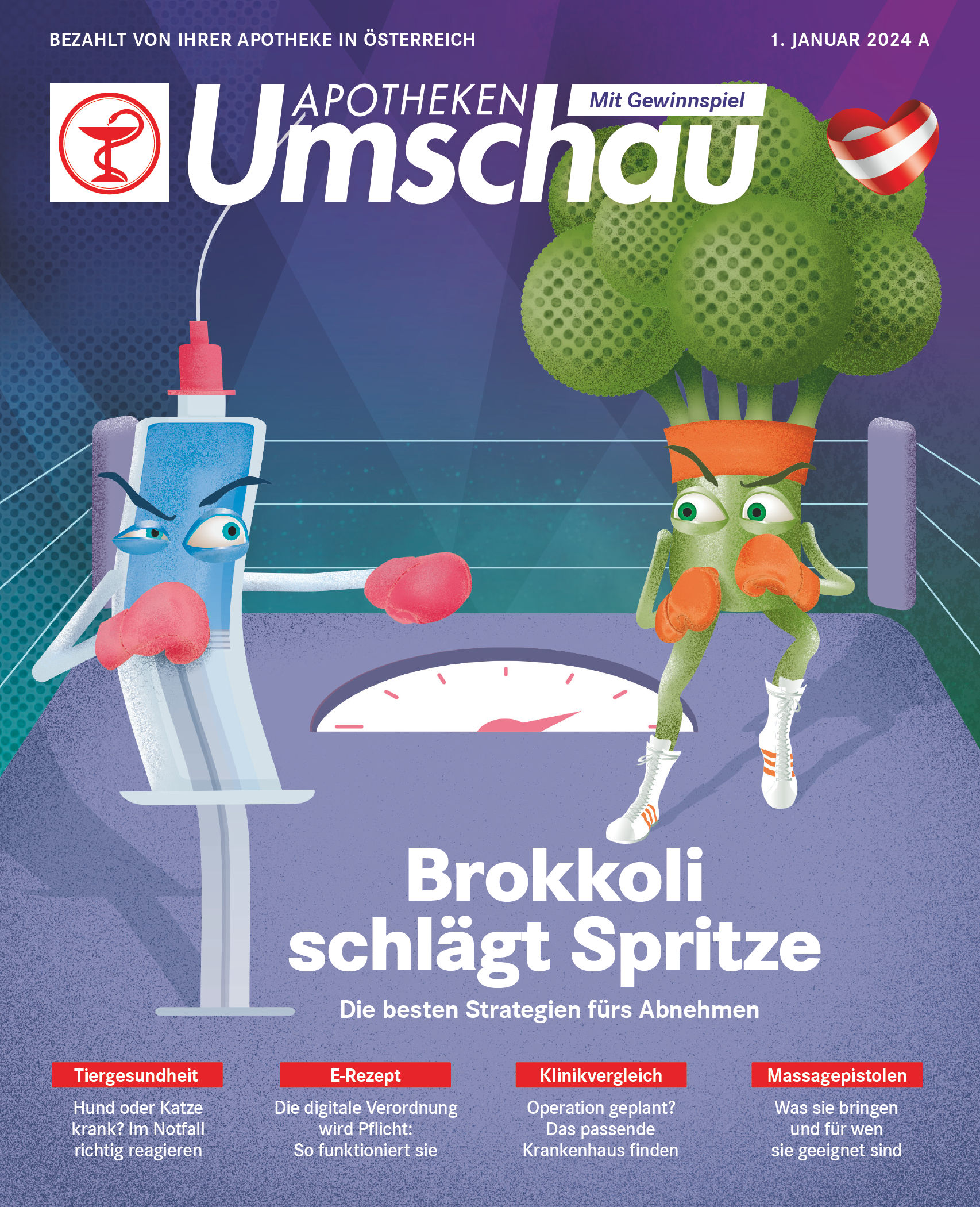 Diese Meldung ist nur mit Quellenangabe zur Veröffentlichung frei. Das Gesundheitsmagazin "Apotheken Umschau" 1A/2024 ist aktuell in den meisten Apotheken auch in Österreich erhältlich. Viele weitere interessante Gesundheits-News gibt es unter https://www.apotheken-umschau.de sowie auf Facebook, Instagram und YouTube.